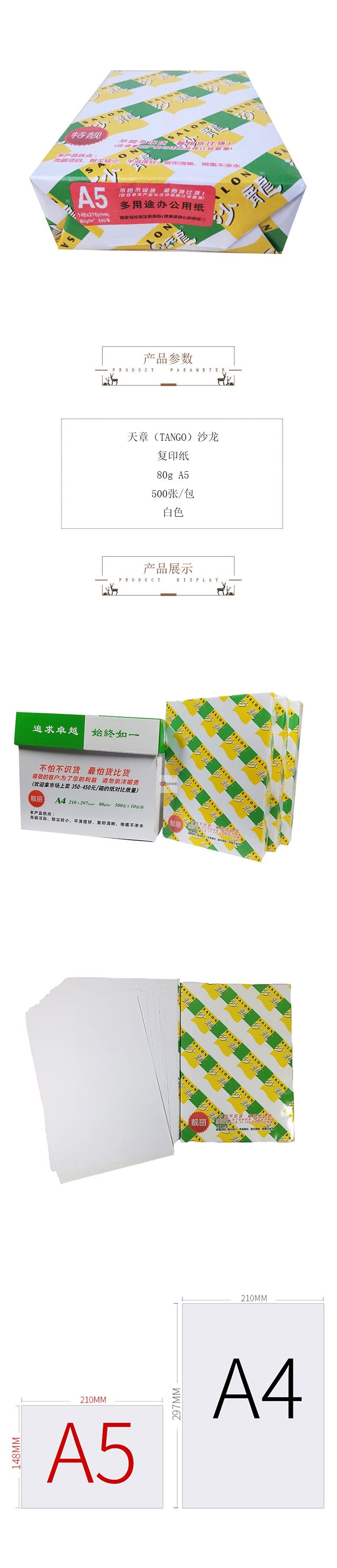 商品名稱:天章(TANGO)沙龍復印紙 80g A5 500張/包 20包/箱 白色