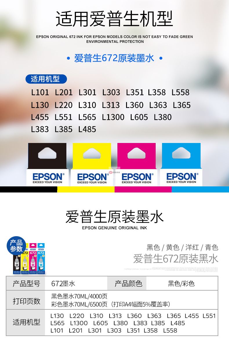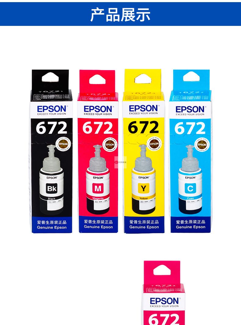 商品名稱:愛(ài)普生T6721原裝墨水L380 L385 L485 L551 L1300 L360 L220打印機(jī) T672愛(ài)普生原裝黃色墨水