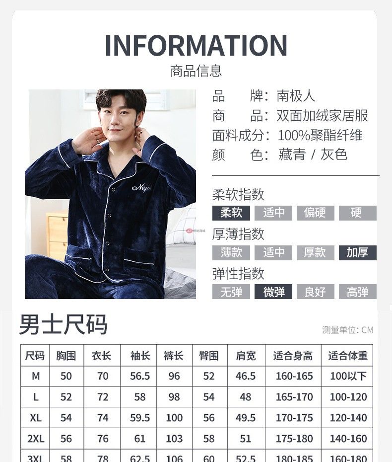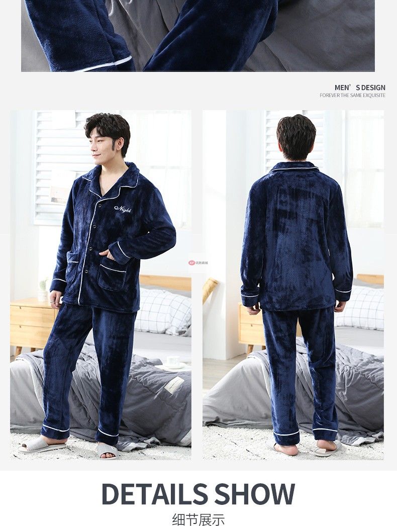 商品名稱:南極人睡衣男秋冬家居服套裝可外穿法蘭絨保暖加厚加絨珊瑚絨睡衣套裝 藏青 XXL