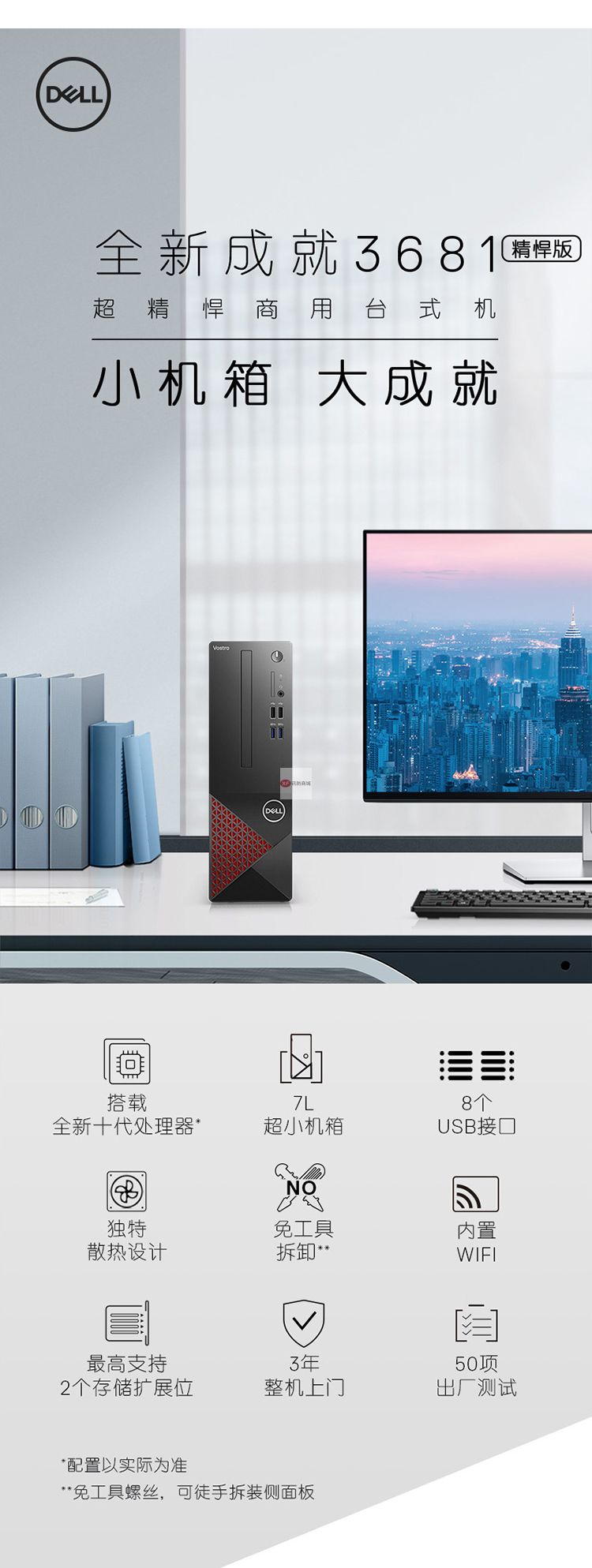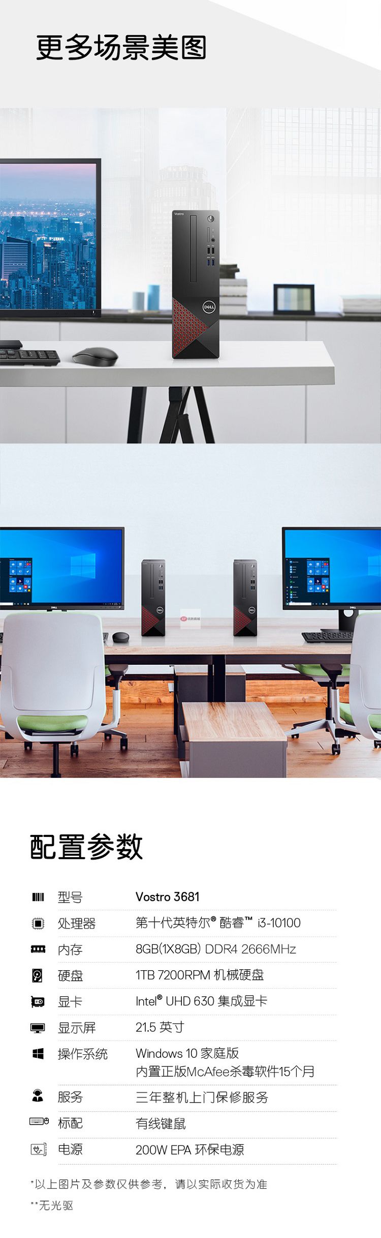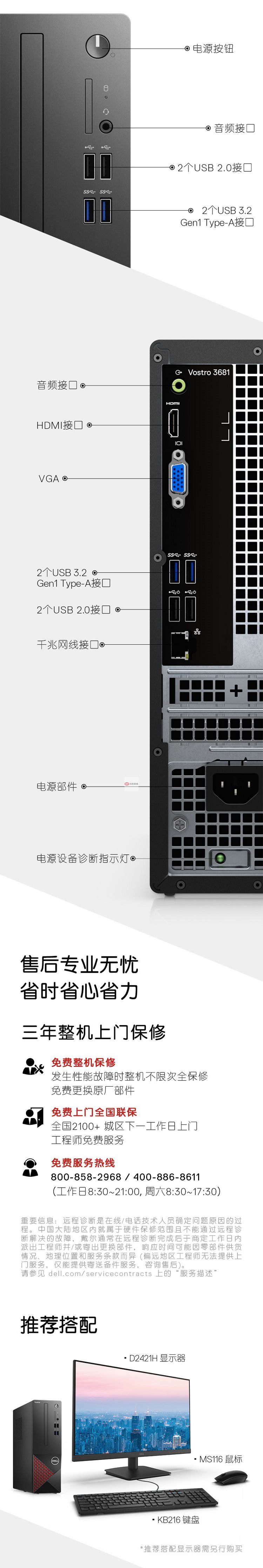 商品名稱:戴爾(DELL)成就3681英特爾酷睿i3商用辦公高性能臺式機電腦整機(十代i3-10100 8G 1T 三年上門售后)21.5英寸