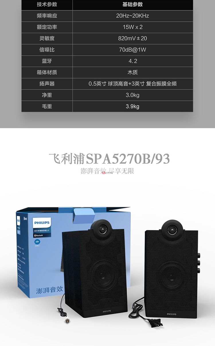 商品名稱:飛利浦(PHILIPS)SPA5270B 音箱電腦藍(lán)牙無線HIFI2.0有源多媒體音響