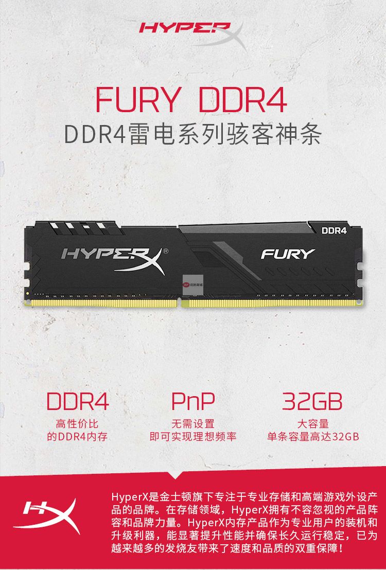 商品名稱:金士頓 (Kingston) 16GB(8G×2)套裝 DDR4 2666 臺式機內(nèi)存條 駭客神條 Fury雷電系列