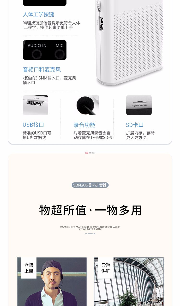 商品名稱:飛利浦(PHILIPS)SBM200 便攜式擴音器 小蜜蜂插卡音箱 擴音喇叭 大功率教學專用教師導游話筒 播放器 黑色