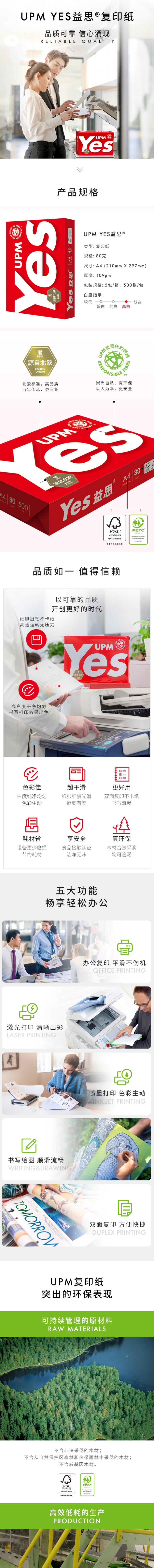 商品名稱:益思復印紙 紅益思a4打印紙70g 高白復印紙 upm復印紙 多功能復印紙a4 70g紙 白紙a4 70克A4 5包/箱 500張/包