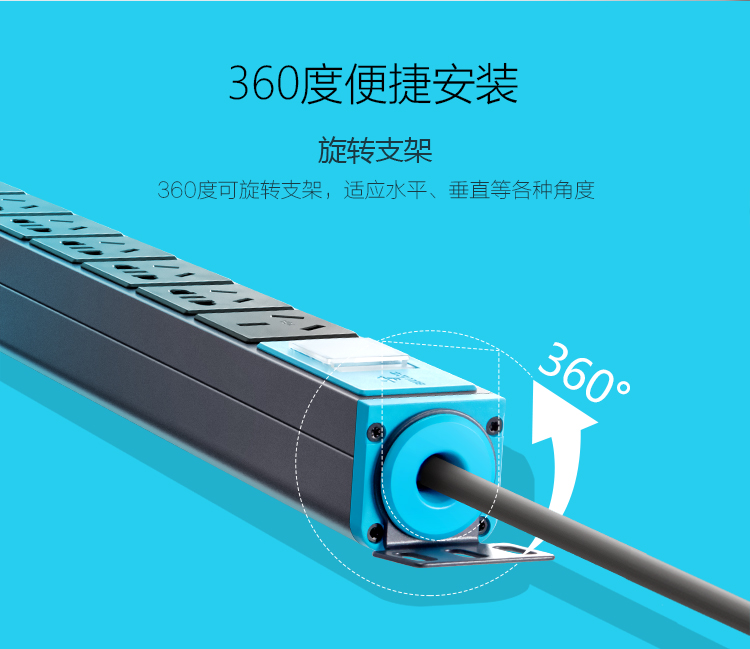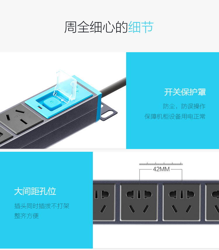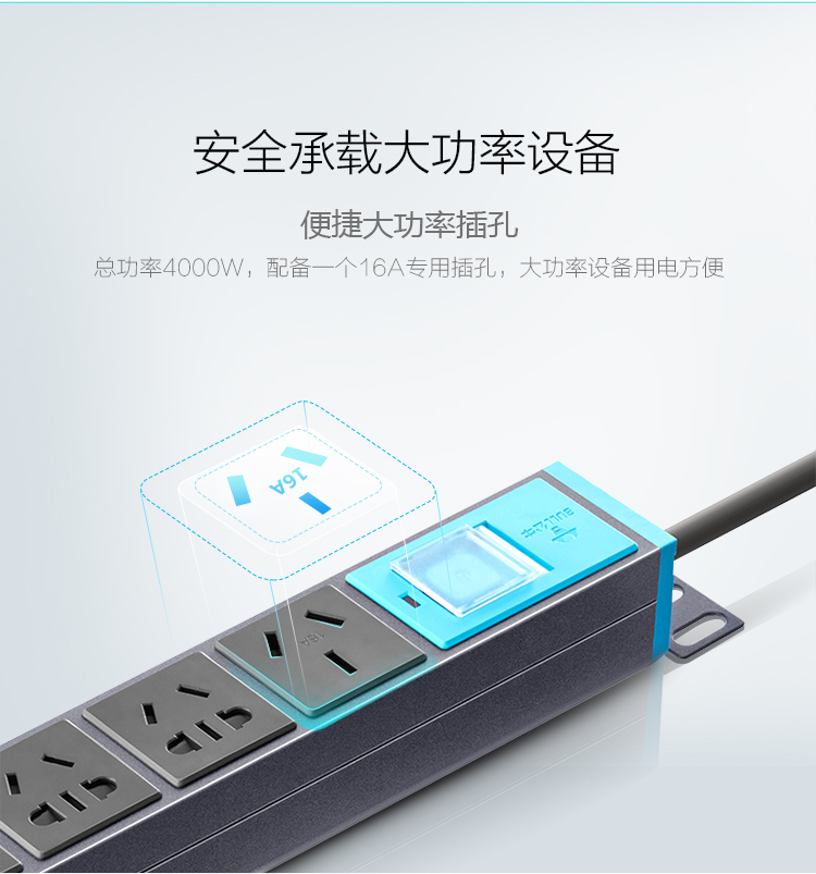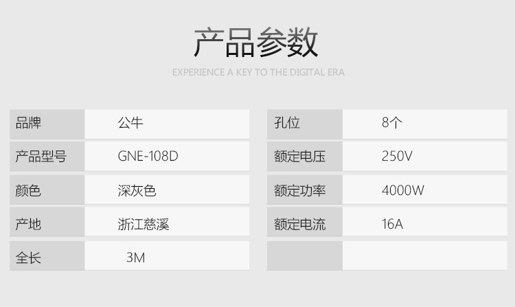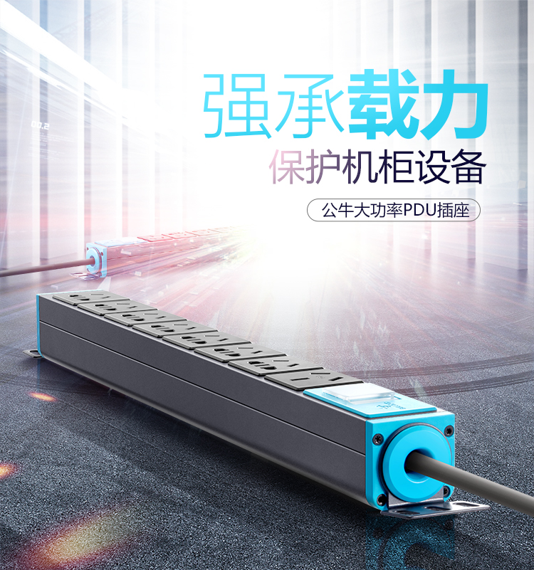 商品名稱:公牛(BULL)16A大功率插PDU機柜座/插線板/插排/排插/接線板/拖線板 8位總控全長3米 GNE-108D