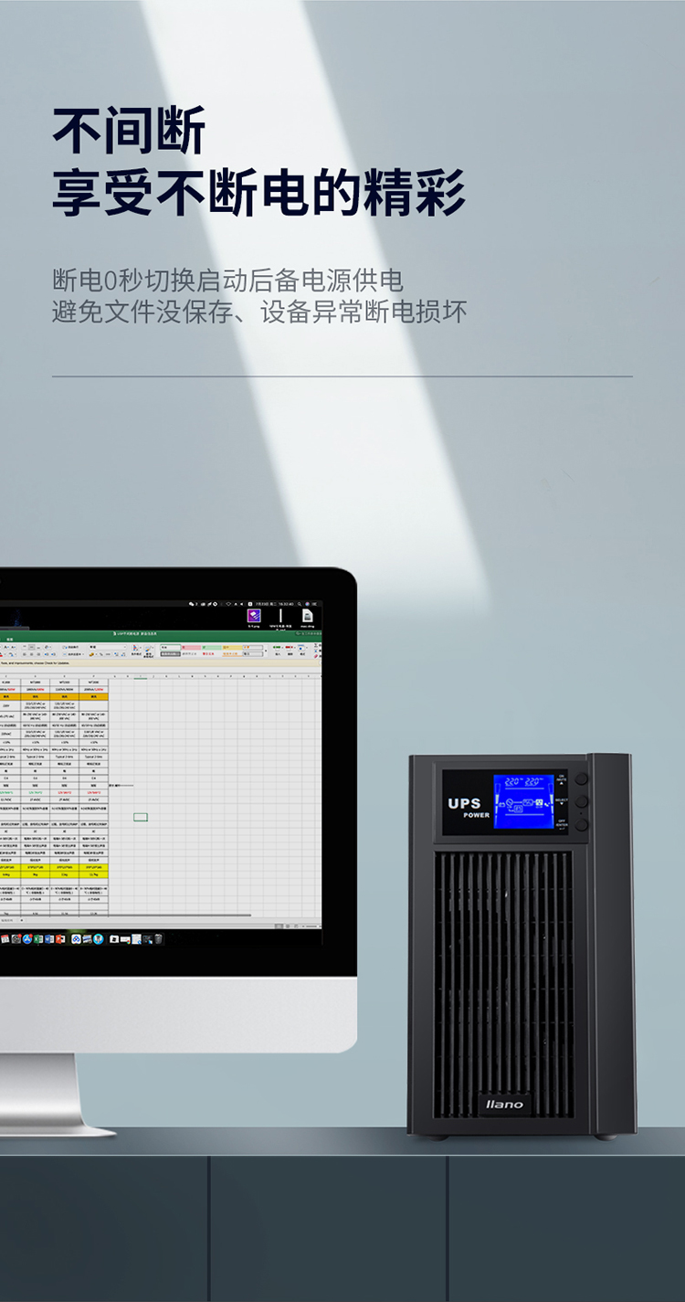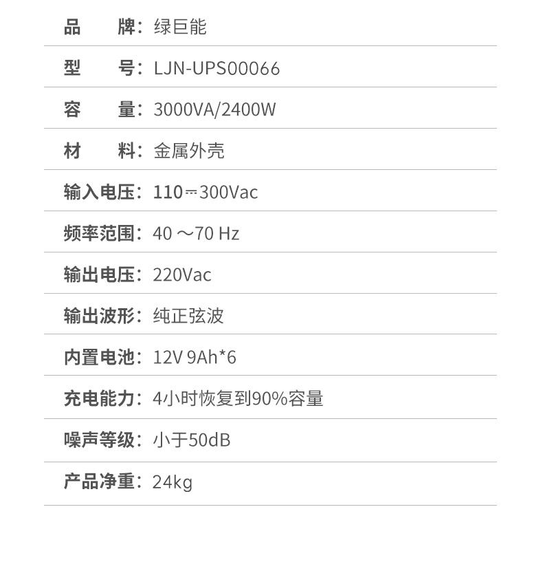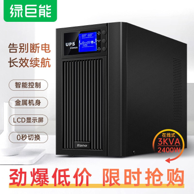 商品名稱:綠巨能(llano)UPS電源家用 不間斷電源 服務器辦公電腦后備電源 金屬外殼 在線式 3KVA/2400W 9AH電池*6