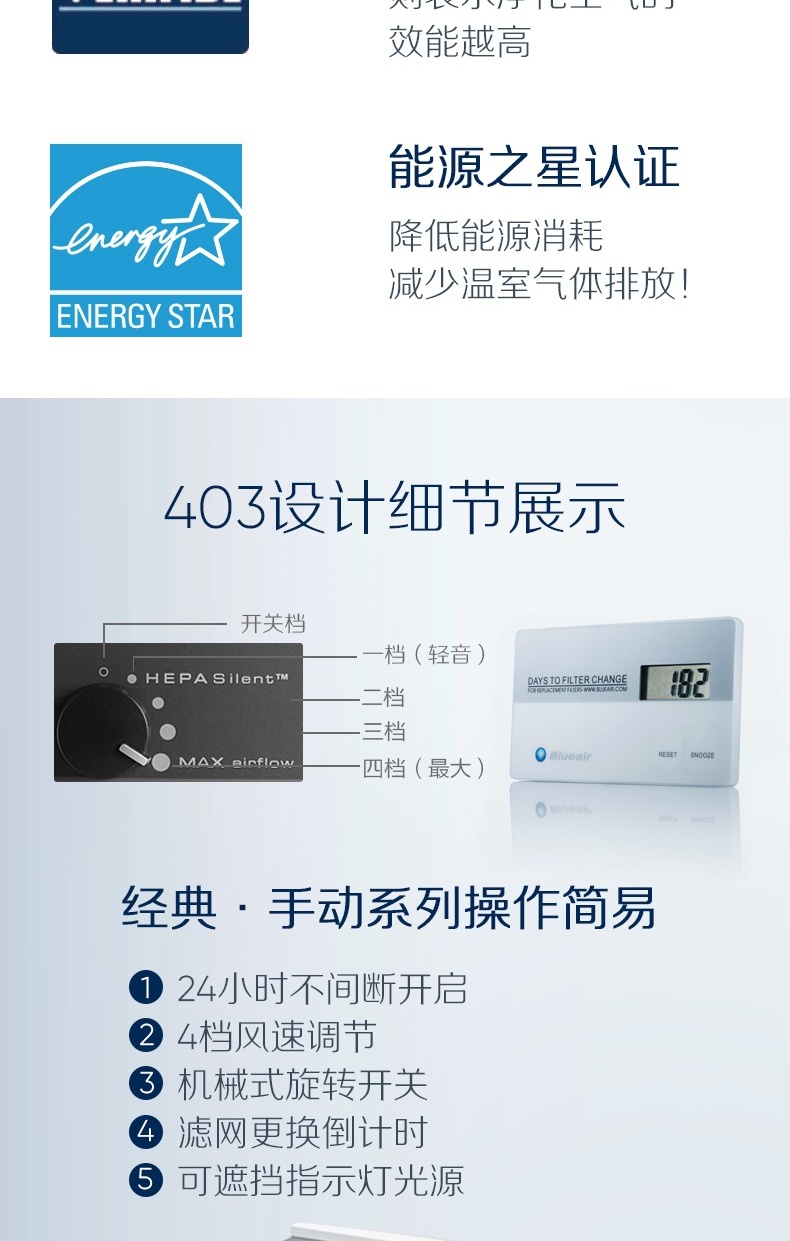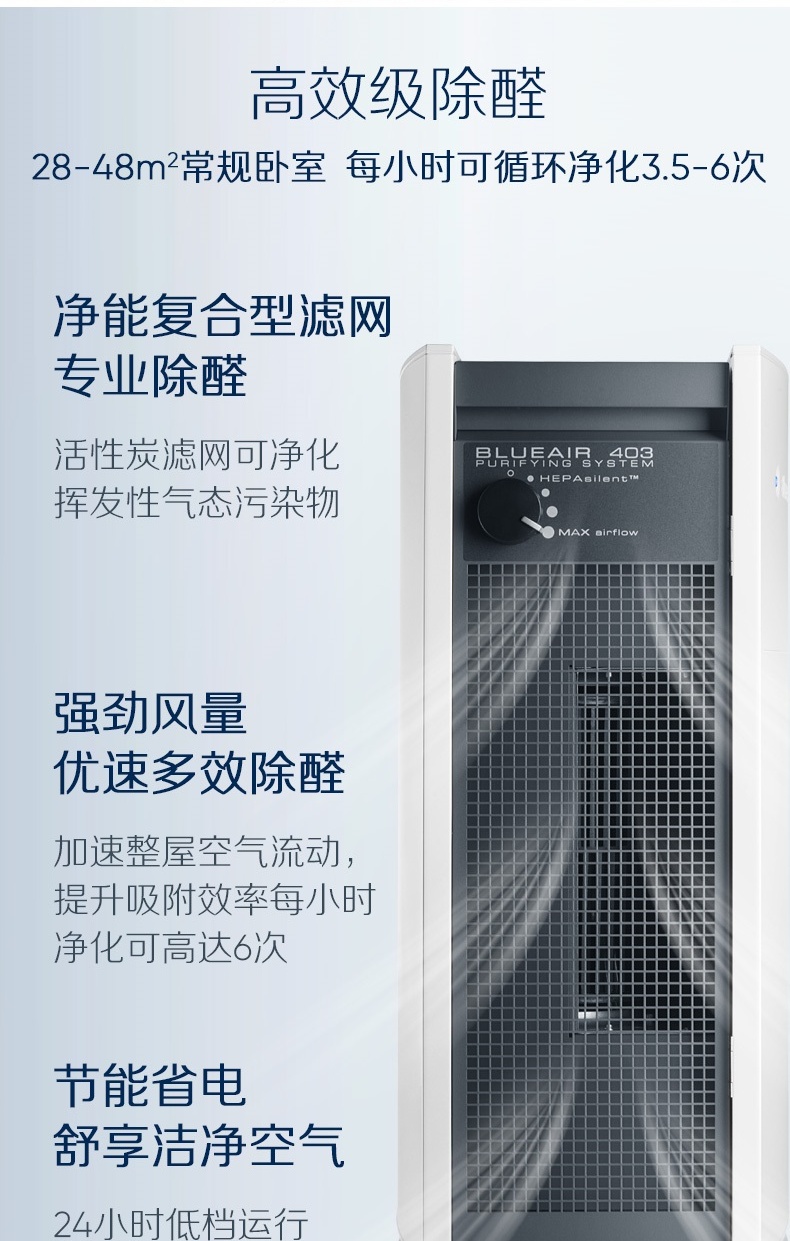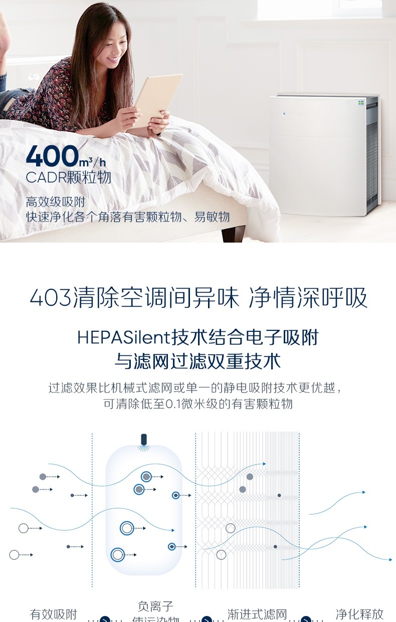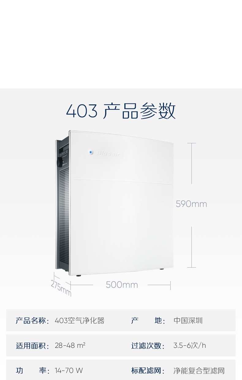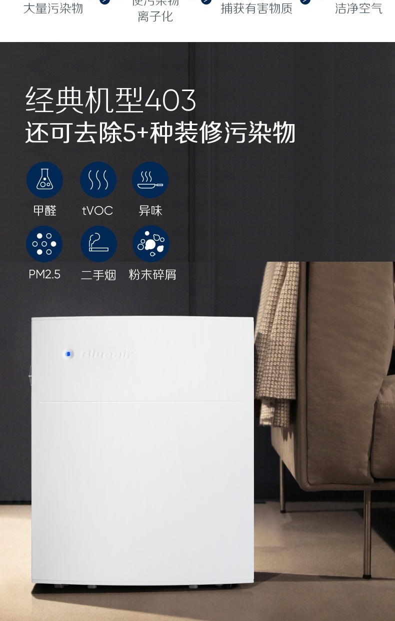 商品名稱:布魯雅爾 Blueair 403 空氣凈化器 家用 客廳臥室辦公室內(nèi)靜音 除甲醛 除霧霾 除二手煙凈化器(線下同款)