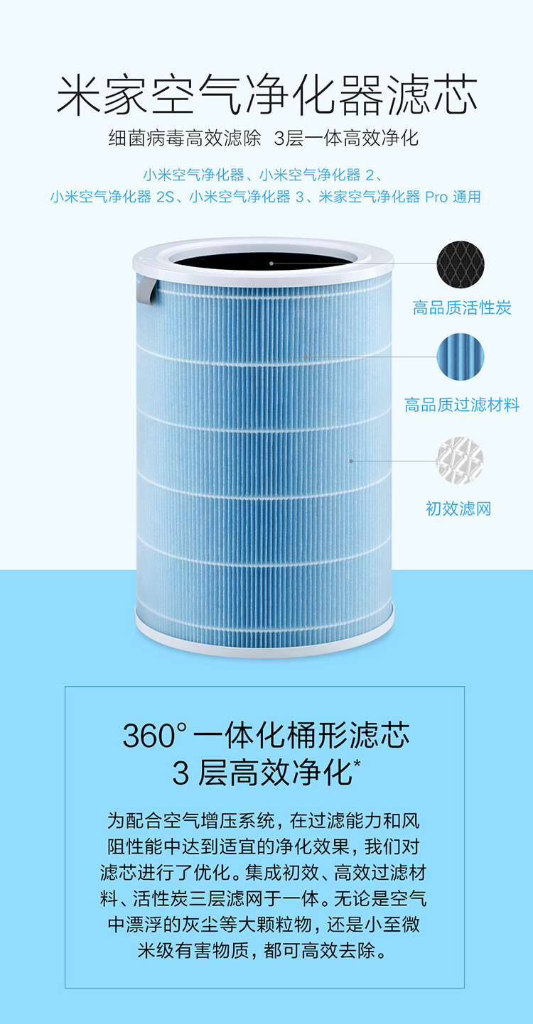 商品名稱:米家 小米空氣凈化器濾芯濾網(wǎng) 標(biāo)準(zhǔn)版 家用除甲醛除菌除煙味 凈化器3/2/2S/pro通用
