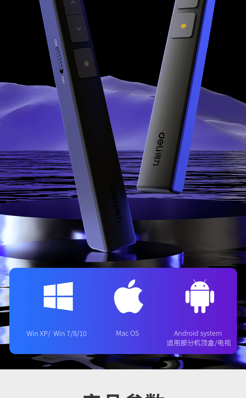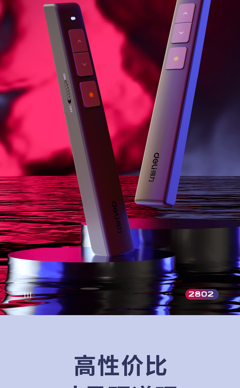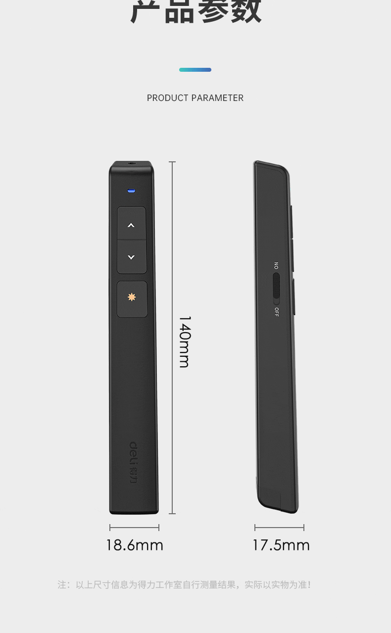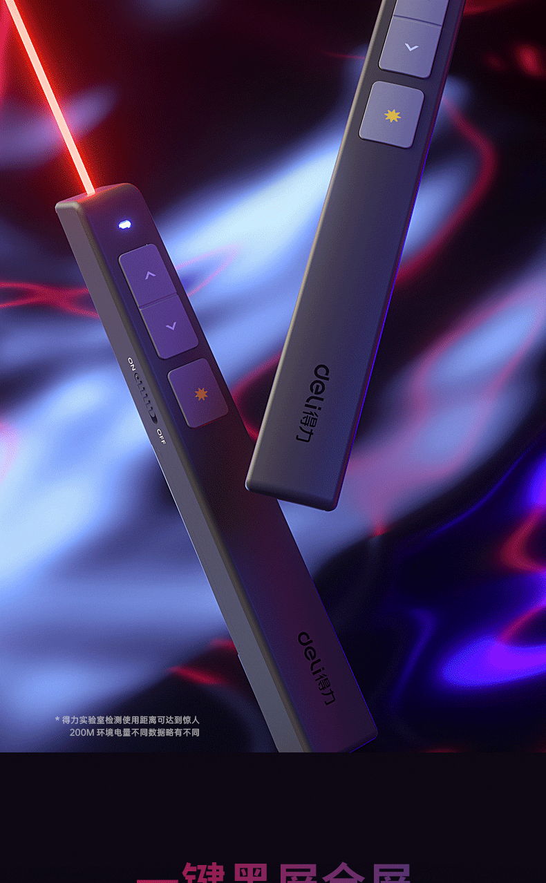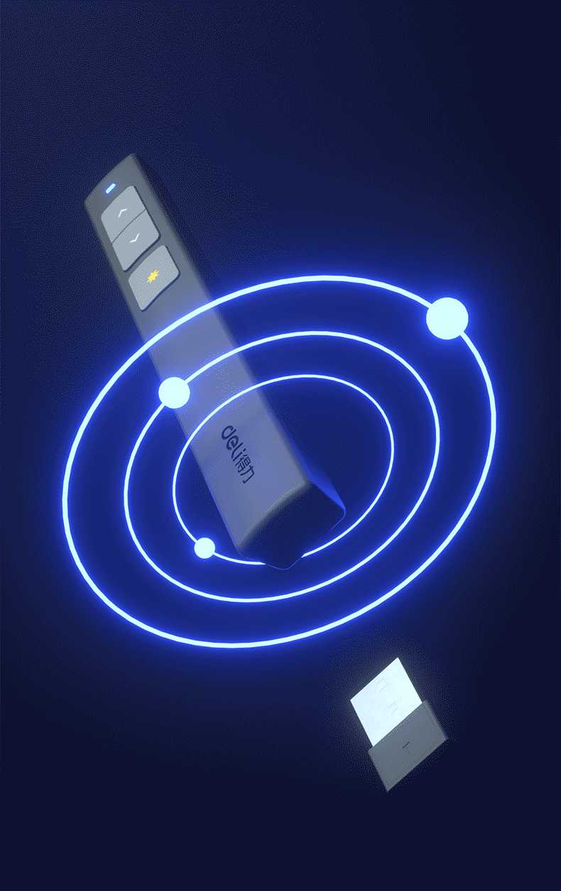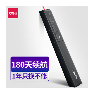 商品名稱:得力(deli)360度控制教師專用PPT投影筆激光翻頁(yè)筆教鞭電子筆演講筆 無(wú)線演示翻頁(yè)器課件筆 紅光 黑色2802