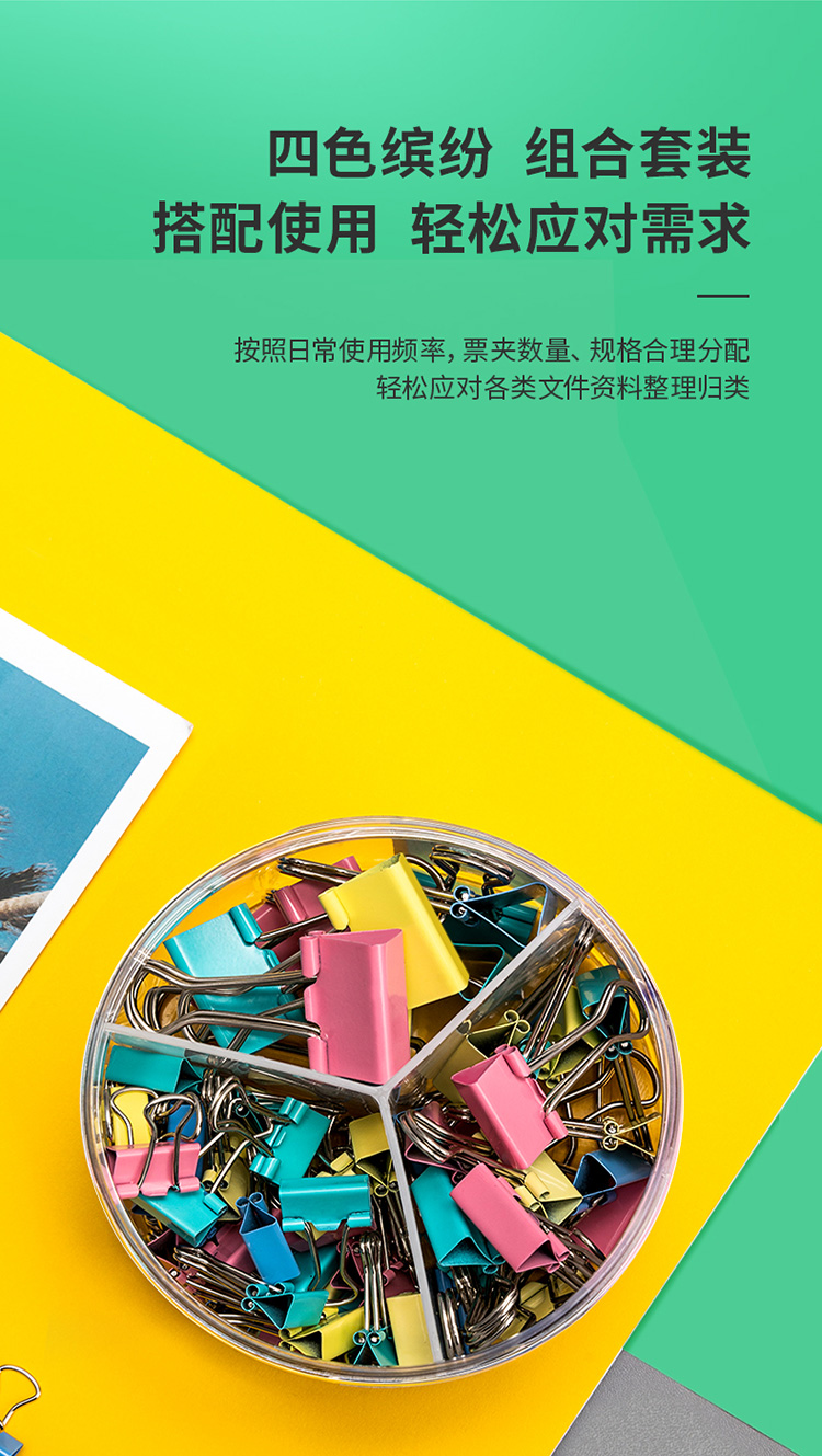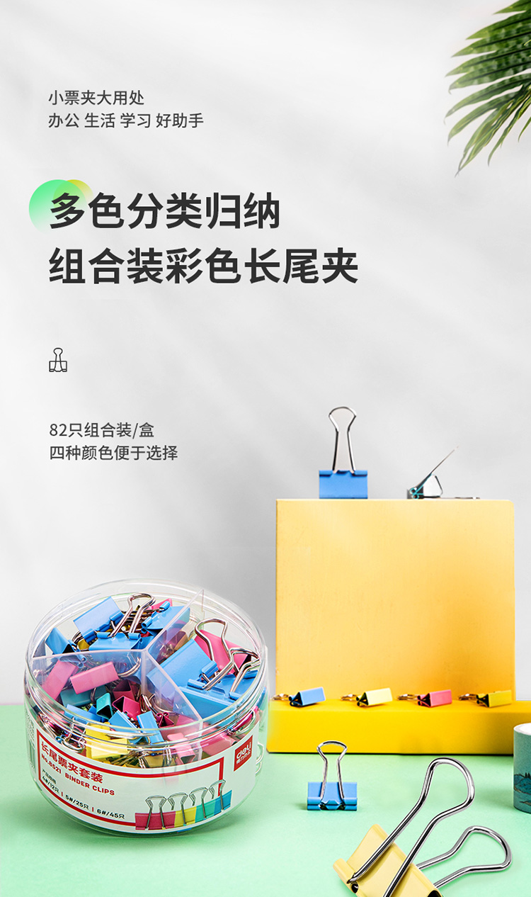 商品名稱:得力(deli)82只組合裝彩色長(zhǎng)尾夾/燕尾夾/票夾(25mm*12只+19mm*25只+15mm*45只) 辦公用品 8521