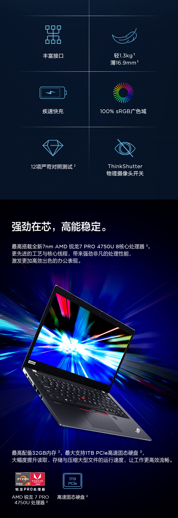 商品名稱:聯(lián)想ThinkPad X13 銳龍版(0ACD)13.3英寸高性能輕薄筆記本電腦(銳龍7 PRO 4750U 16G 512GSSD 100%sRGB)
