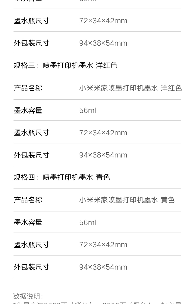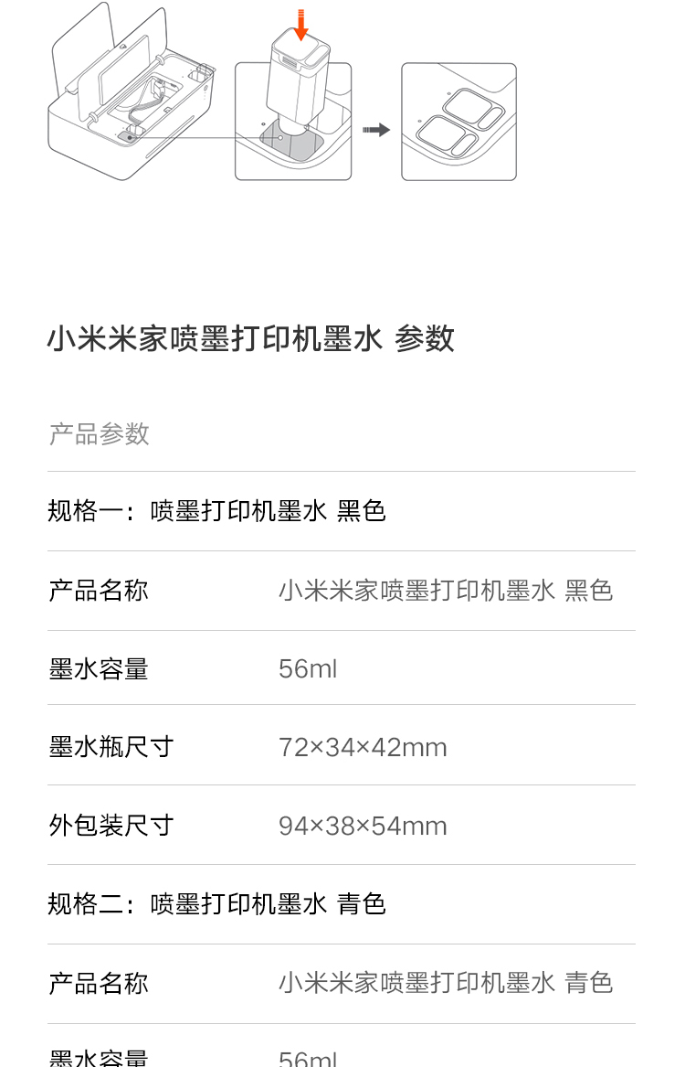 商品名稱:小米米家噴墨打印機墨水 黑色