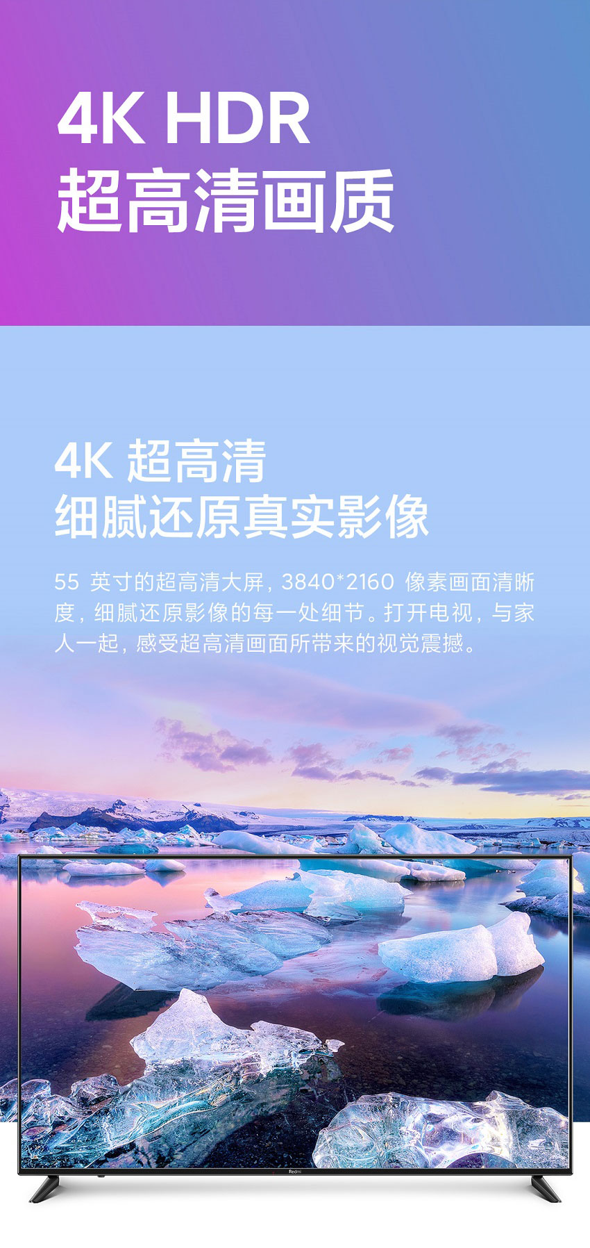 商品名稱:小米(MI)Redmi A55 55英寸4KHDR超高清人工智能網(wǎng)絡(luò)液晶教育平板電視紅米 L55R6-A