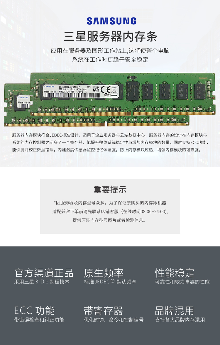 商品名稱:三星/SAMSUNG便攜式服務(wù)器移動(dòng)工作站筆記本糾錯(cuò)校驗(yàn)內(nèi)存條支持NAS ECC SODIMM 16G DDR4 2400 ECC SODIMM