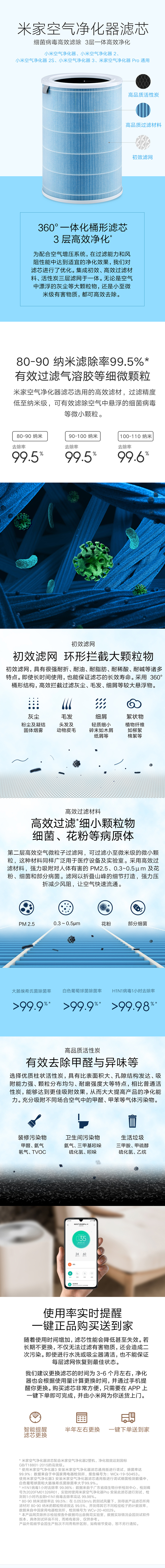 商品名稱:米家 小米空氣凈化器濾芯 標(biāo)準(zhǔn)版 除甲醛除菌除煙味 3層一體高效凈化 適配小米空氣凈化器2/2S/3/pro