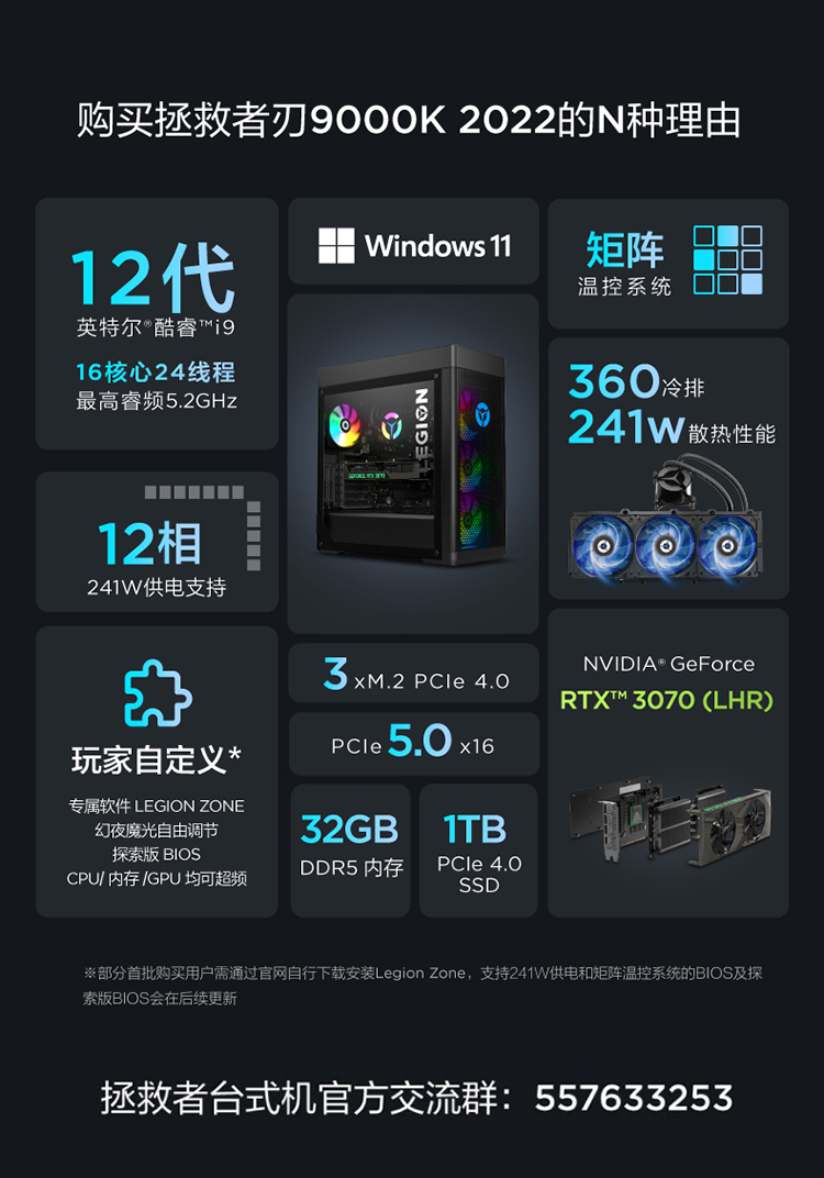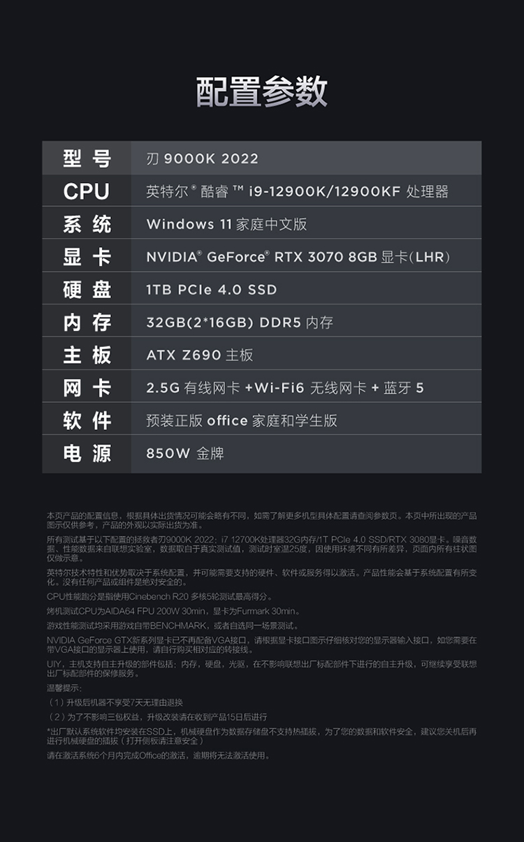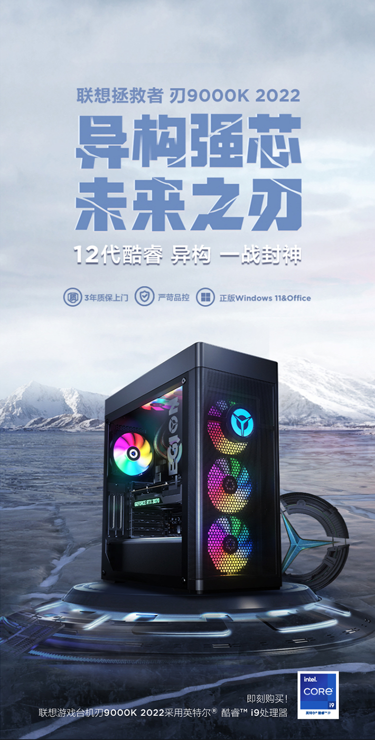 商品名稱:聯(lián)想(Lenovo)拯救者刃9000K 2022游戲電腦主機(12代酷睿i9-12900KF RTX3070 32G DDR5 1TB SSD 側(cè)透 )