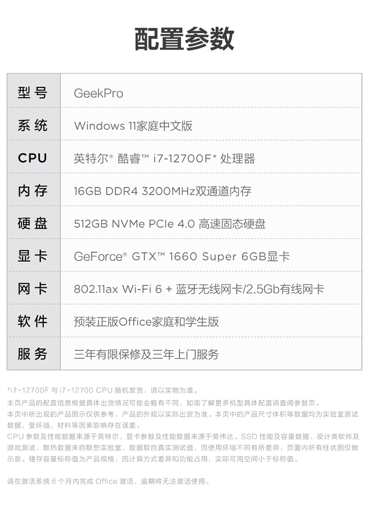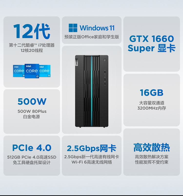 商品名稱:聯(lián)想(Lenovo)GeekPro 2022設(shè)計(jì)師游戲臺(tái)式電腦主機(jī)(12代i7-12700F GTX1660super 16G 512G SSD )