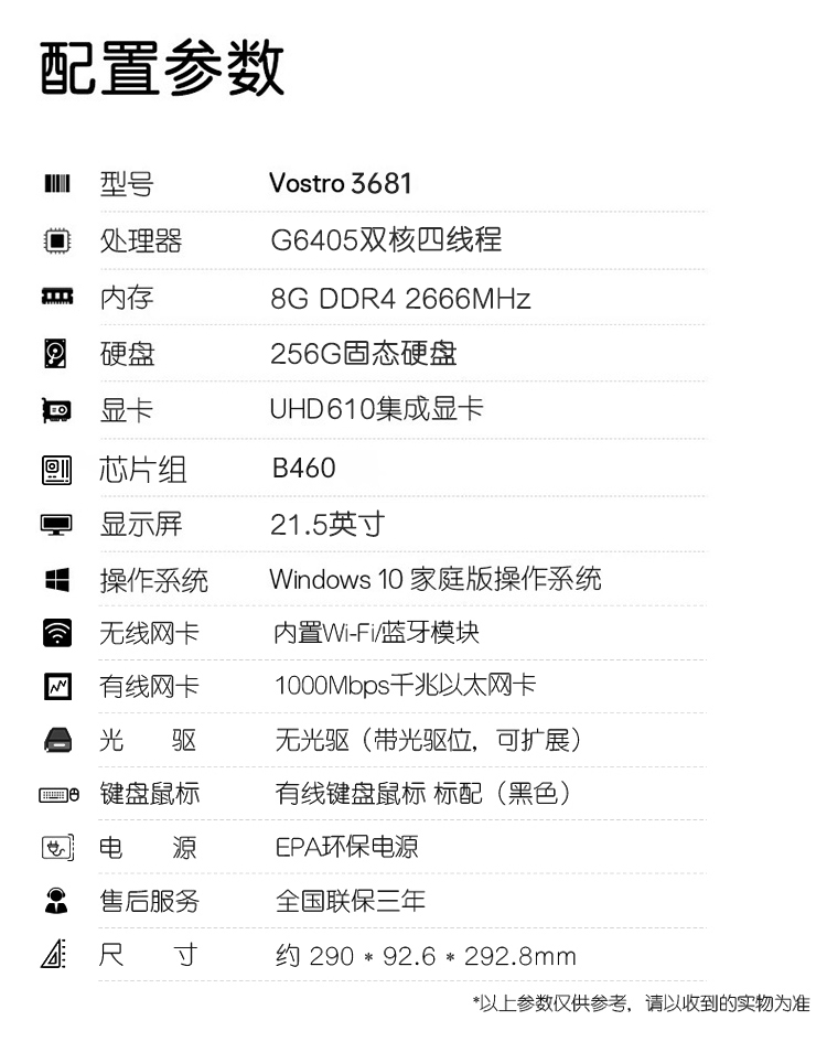 商品名稱:戴爾(DELL) 成就3681 辦公商用家用臺(tái)式電腦 全套整機(jī)迷你小主機(jī)3710同款外觀 主機(jī)+21.5英寸顯示器 英特爾G6405 8G 256G固態(tài)