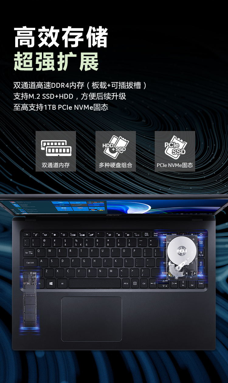 商品名稱:宏碁(Acer)墨舞EX215 15.6英寸輕薄筆記本電腦(酷睿i5 銳炬顯卡 16G 512GSSD 全高清防藍光 Win11)