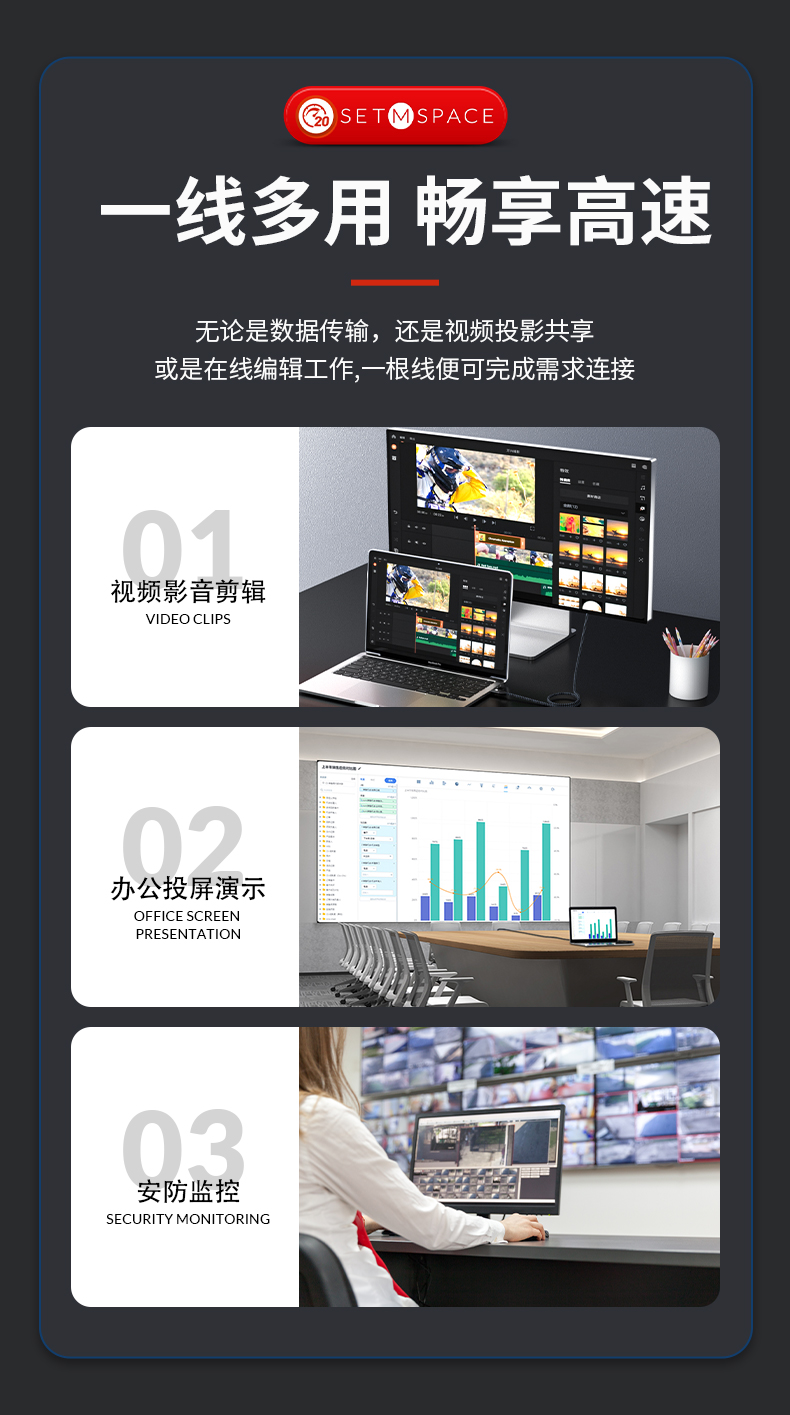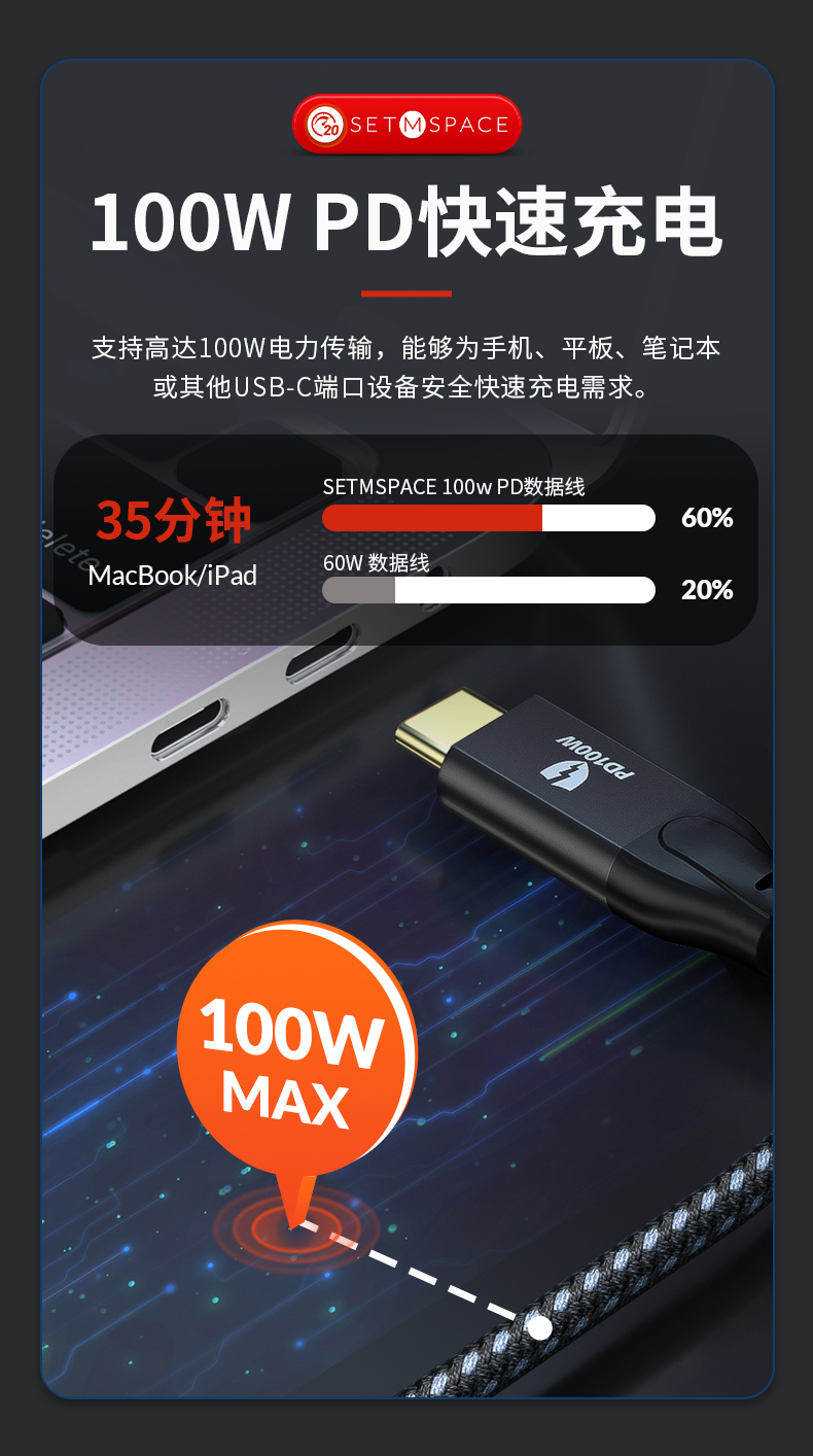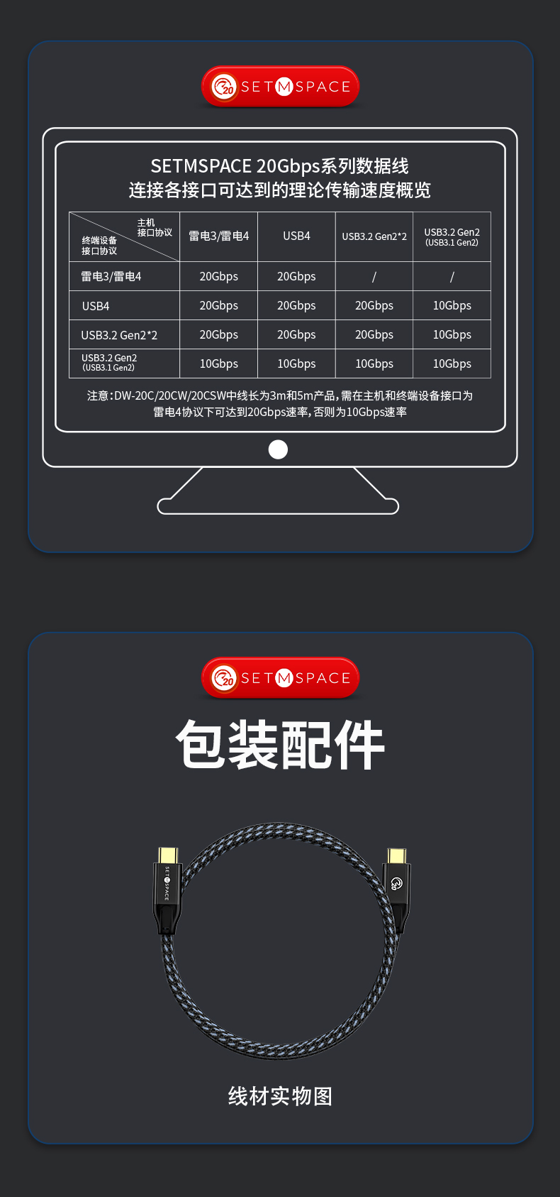 商品名稱(chēng):SETMSPACE (合金桌面)USB3.2Gen2*2全功能type-c數(shù)據(jù)線顯示器視頻連接線快充 20Gbps USB3.2 C直-C直 線長(zhǎng)0.5m