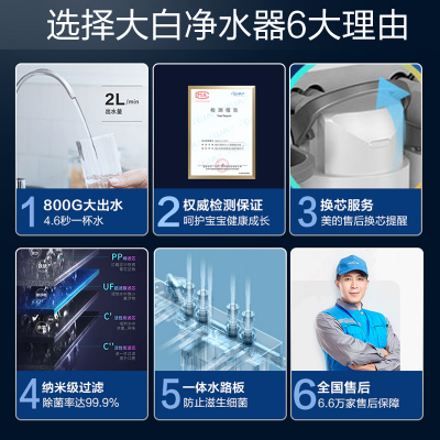 商品名稱:美的(Midea) 凈水器機家用廚房下直濾飲水前置過超濾器機無罐MU135B-4