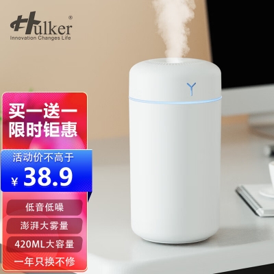 商品名稱:Hulker 【420mL款發(fā)兩只】加濕器 臥室迷你家用辦公室桌面車載低噪上加水小型usb空氣加濕器 【白色贈白色】420ml大容量/低噪加濕/定時斷電