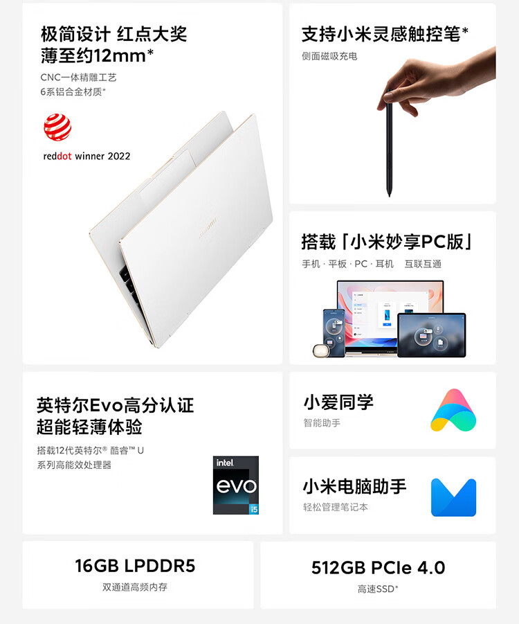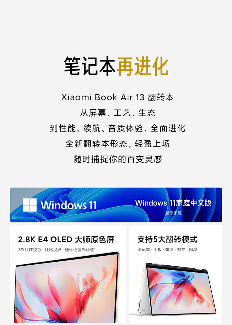 商品名稱:小米 Xiaomi Book Air 13 2.8K OLED高清屏筆記本電腦(酷睿i5 16G 512G 翻轉(zhuǎn)觸控屏 正版office 辦公長續(xù)航)