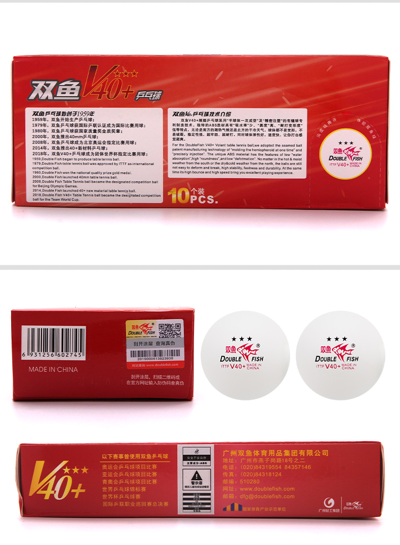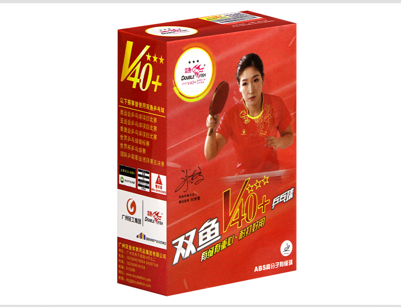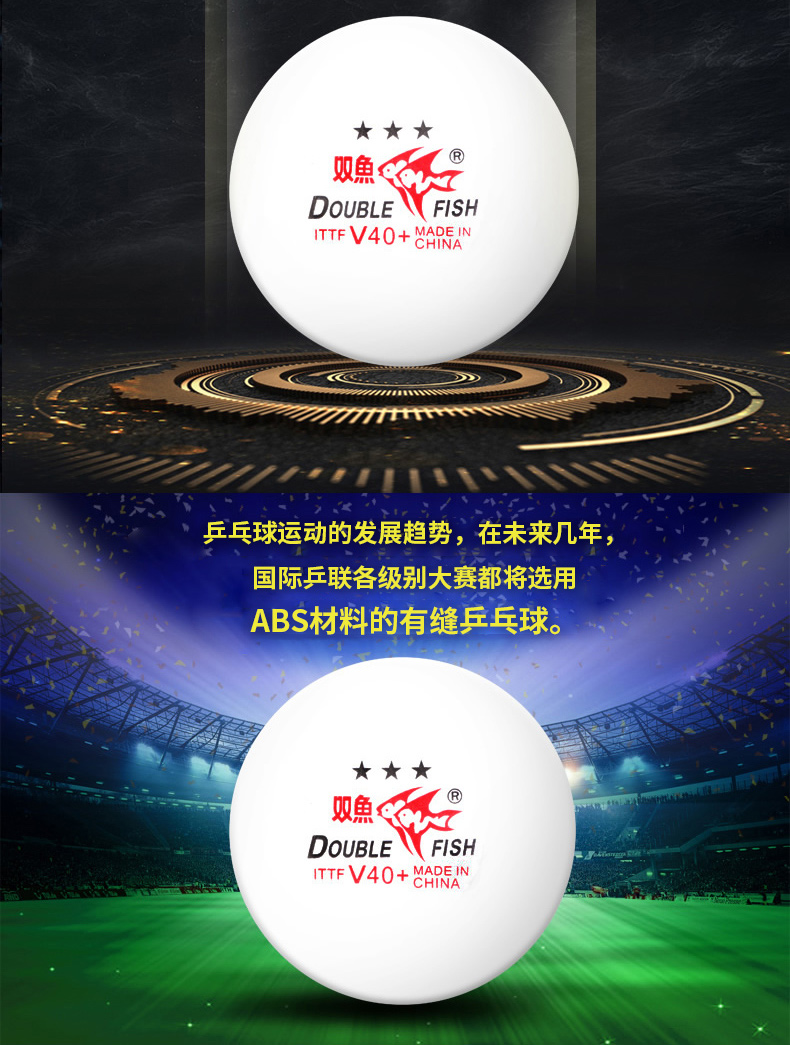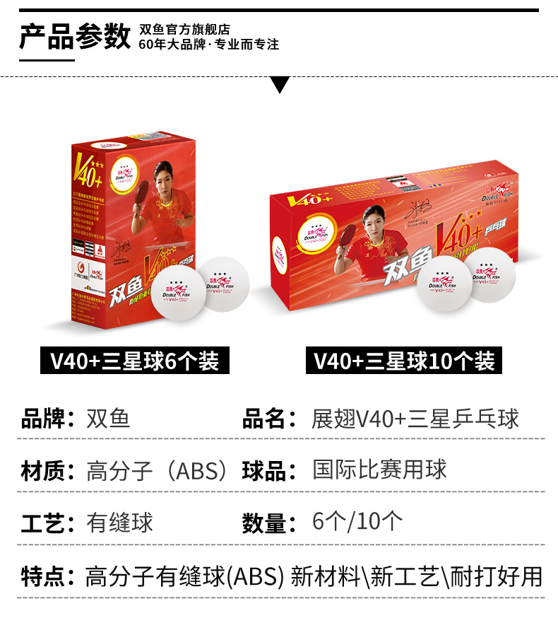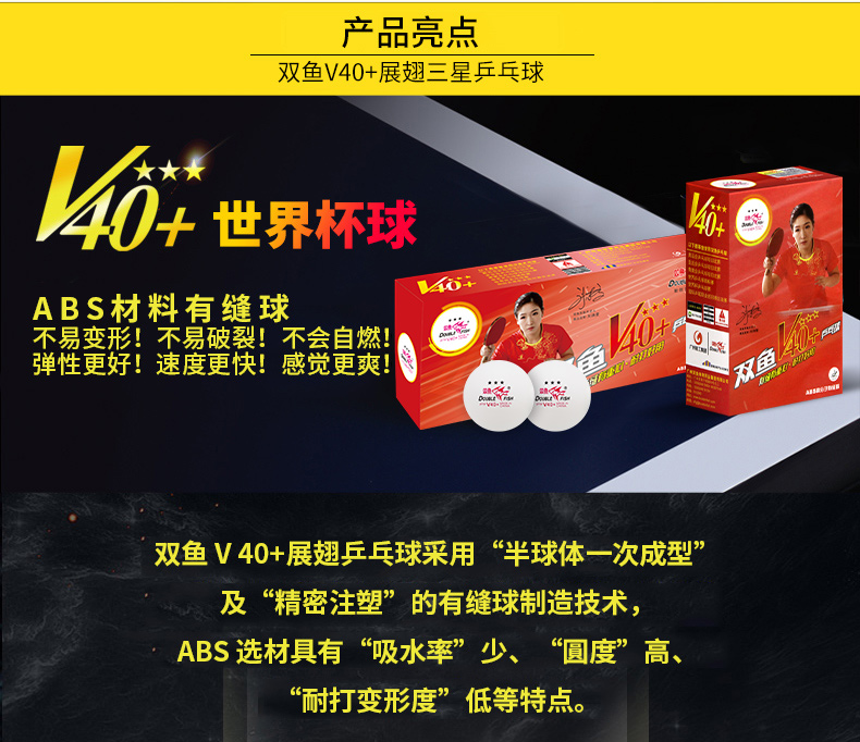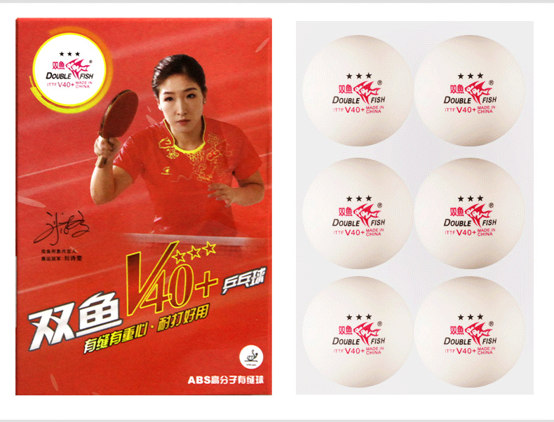 商品名稱: 雙魚V40+展翅三星乒乓球 ABS新材料 白色10只/盒