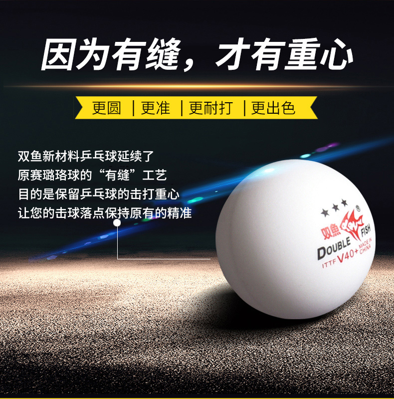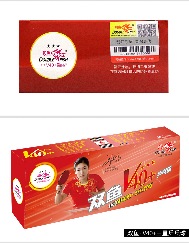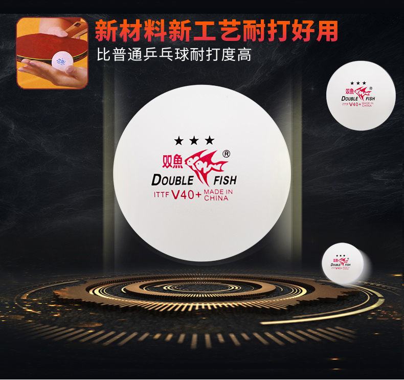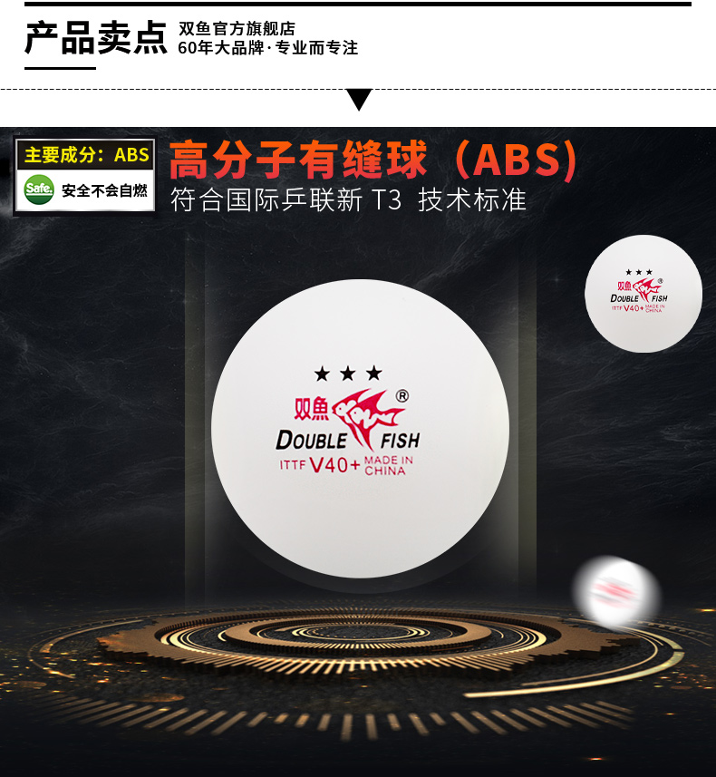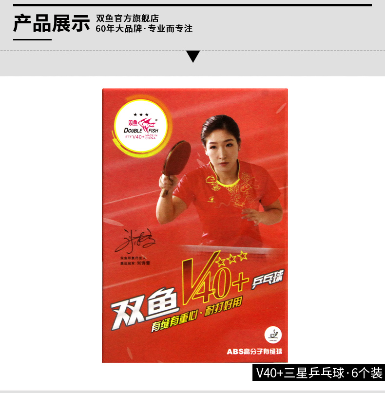 商品名稱: 雙魚V40+展翅三星乒乓球 ABS新材料 白色10只/盒
