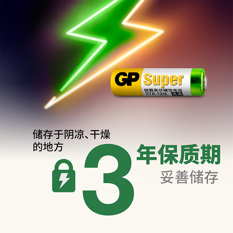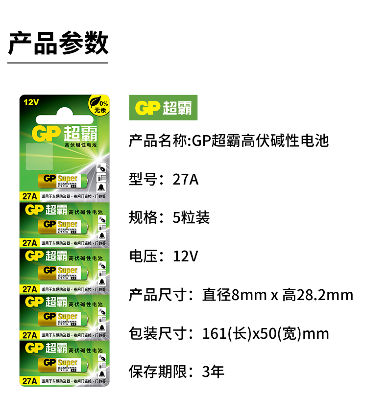商品名稱:超霸(GP)27A12V高伏堿性電池 5粒/排