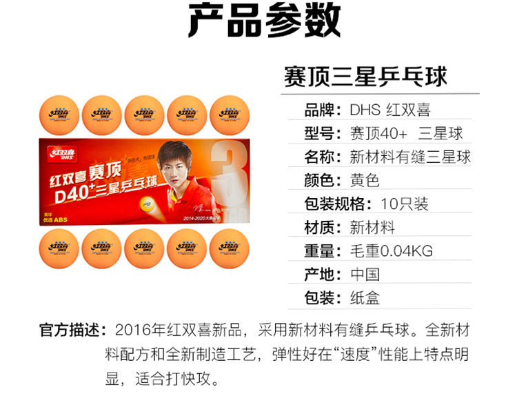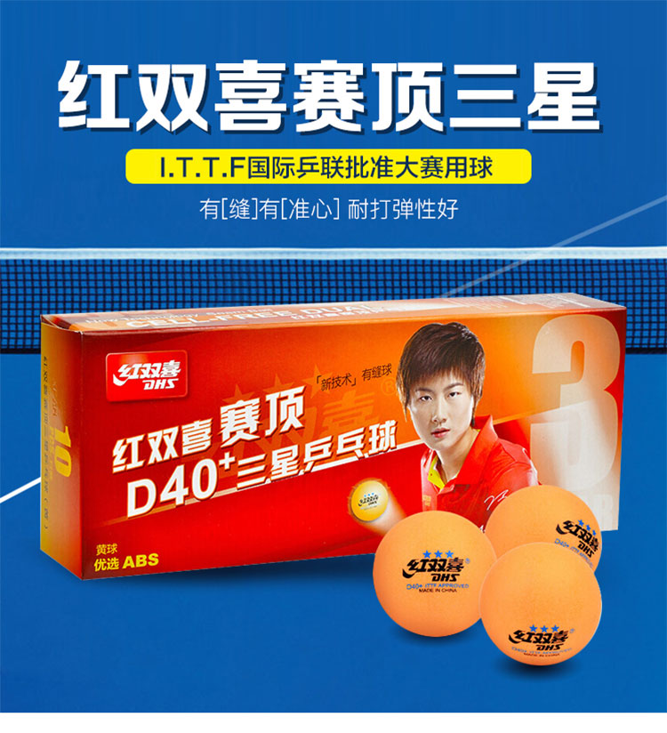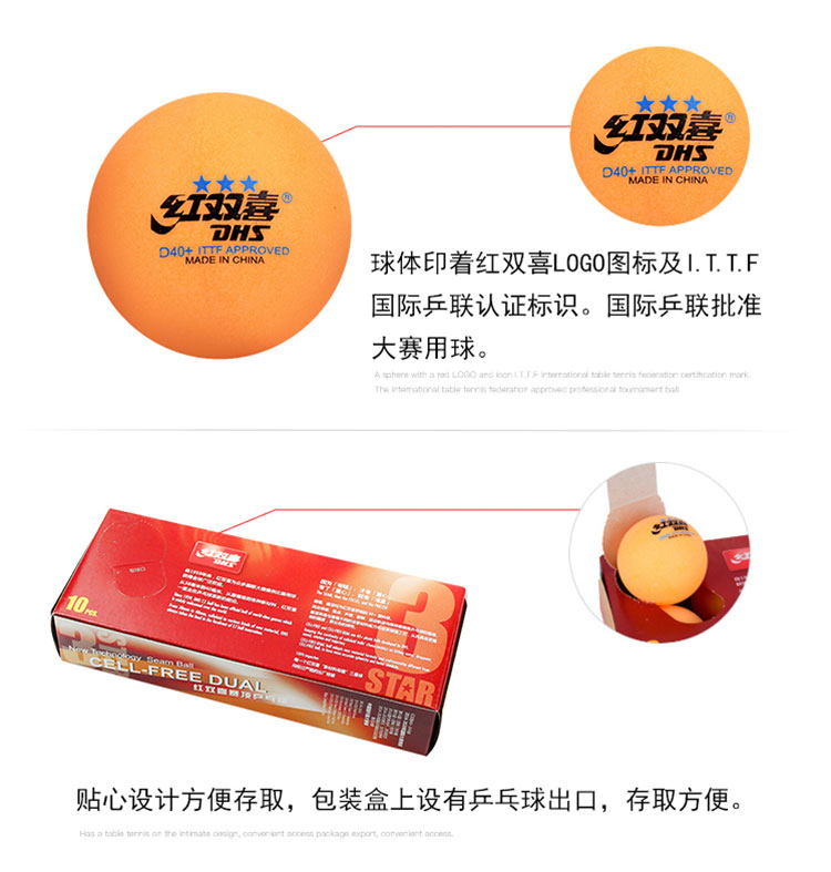 商品名稱:紅雙喜三星大賽比賽用兵乓球 黃色 10只/盒