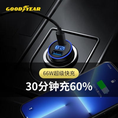 商品名稱:固特異(Goodyear)車載充電器66W超級快充點煙孔轉換器雙口閃充華為蘋果小米GY-2603
