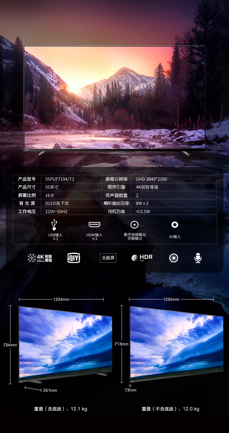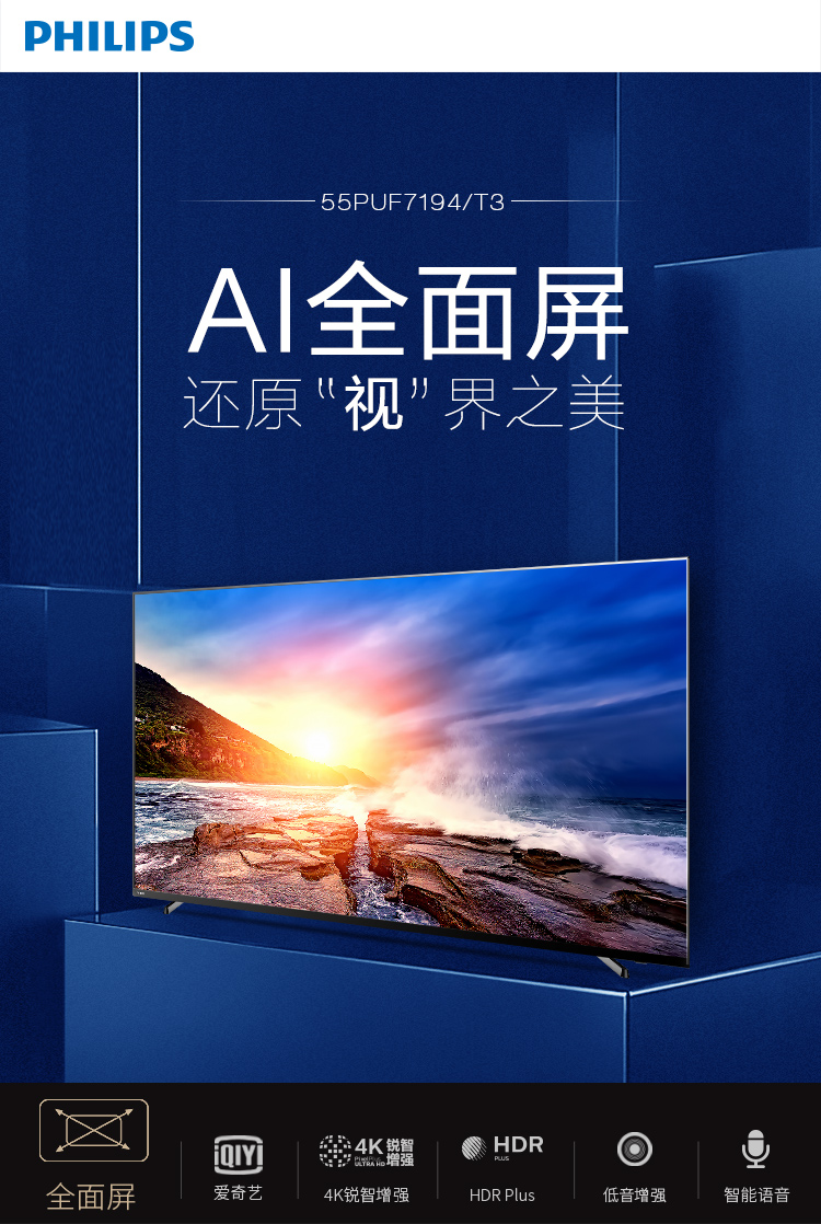 商品名稱:飛利浦(PHILIPS)55PUF7194/T3 55英寸 人工智能 一級(jí)能效 超薄全面屏 4K超高清HDR網(wǎng)絡(luò)智能液晶平板電視機(jī)