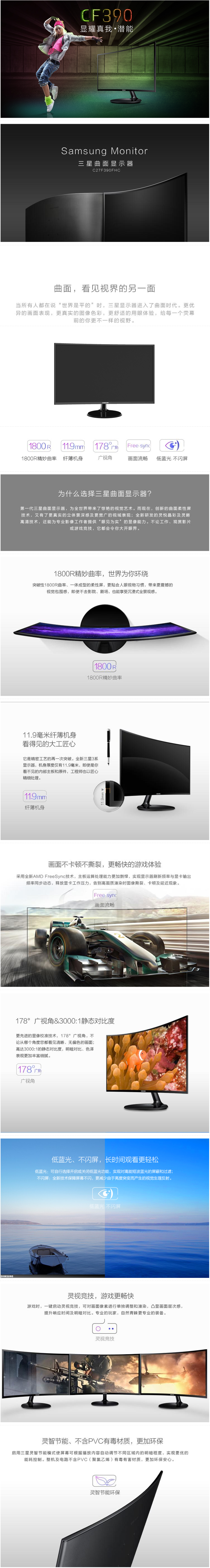 商品名稱:三星(SAMSUNG) 曲面顯示器 C27F390FHC 27英寸 1920*1080 VA面板 VGA HDMI 16:9 一年保修
