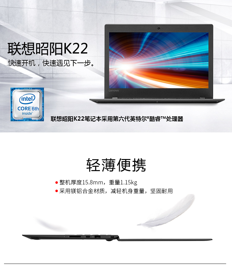 商品名稱:聯(lián)想(Lenovo)筆記本 昭陽(yáng)K22-80 I5-6200U/4G/256G SSSD/核顯/無(wú)光驅(qū)/Win7H//包鼠套裝