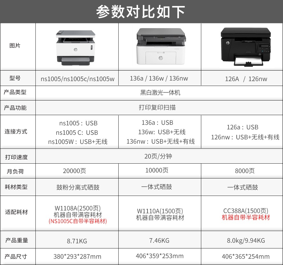 商品名稱:惠普hp 打印機(jī) 1005 1136 126a 136nw 30w A4黑白激光 復(fù)印 掃描 一體機(jī) 136w(升級款無線連接)