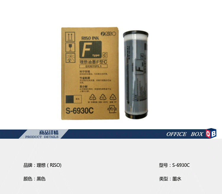 商品名稱:理想(RISO) S-6930C F型黑油墨(適用機(jī)型SF5231/SF5233/SF5234/SF5250C/SF5330/SF5351/SF5353/SF5354/SF9350) 黑色2000頁