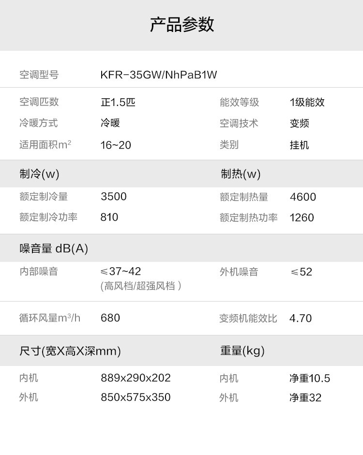 商品名稱:格力(GREE)1.5匹 云錦 一級能效 變頻 冷暖自潔 壁掛式臥室空調掛機 KFR-35GW/NhPaB1W 京魚座智能生態(tài)產品