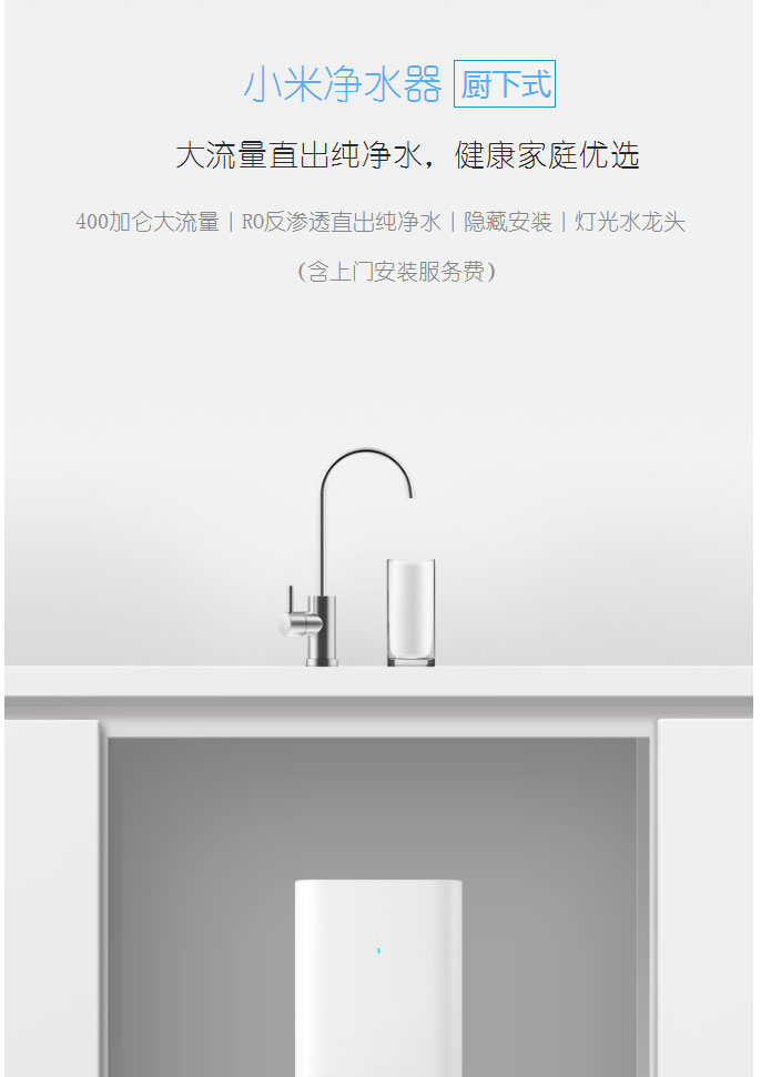 商品名稱:小米(MI)凈水器廚下版 家用凈水器 RO反滲透大流量直飲低廢水 智能提醒自助更換濾芯更便捷