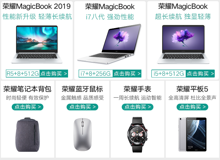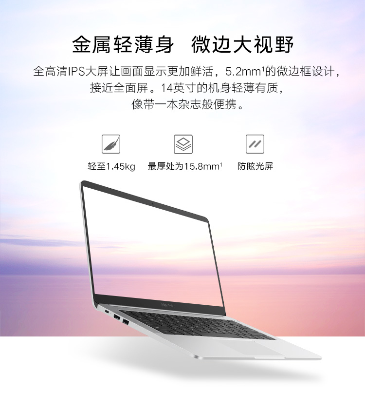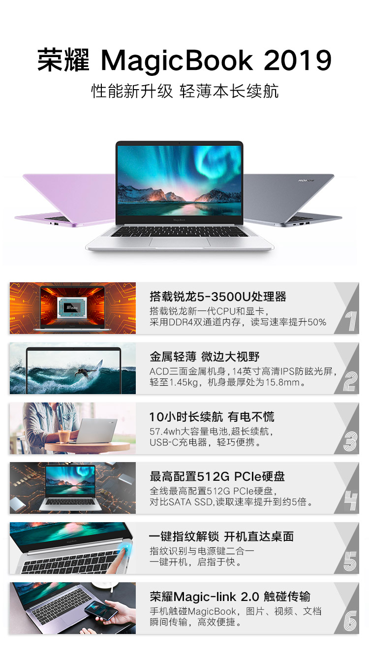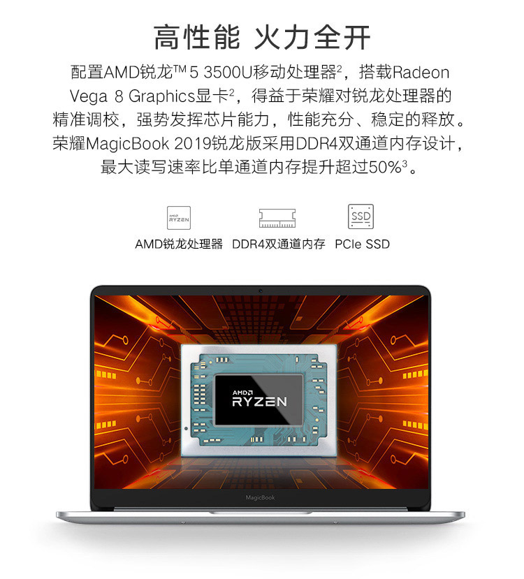 商品名稱:榮耀MagicBook 2019 14英寸輕薄窄邊框筆記本電腦(AMD銳龍5 3500U 8G 512G FHD IPS 指紋解鎖)冰河銀