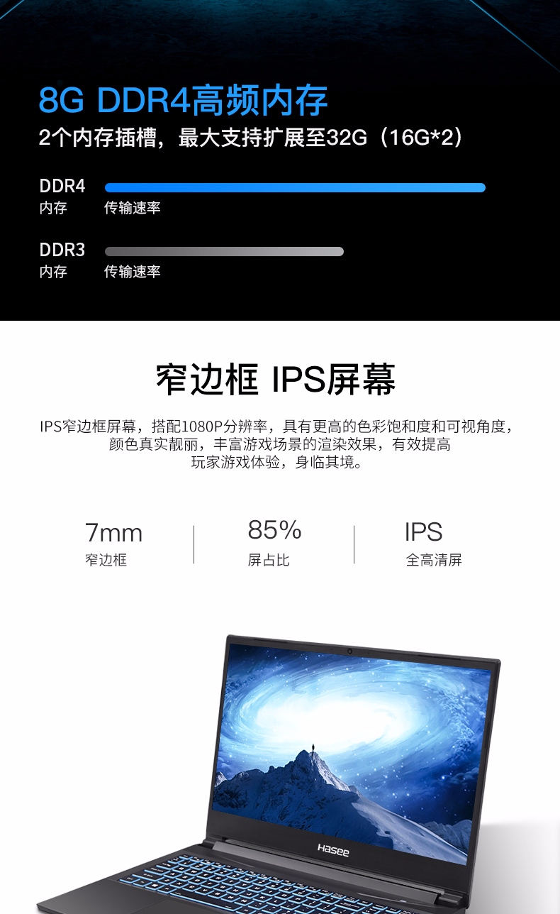 商品名稱(chēng):神舟(HASEE)戰(zhàn)神Z7-CT7NA 英特爾酷睿i7-9750H GTX1660Ti 6G獨(dú)顯15.6英寸窄邊框游戲筆記本電腦(8G 512G SSD)