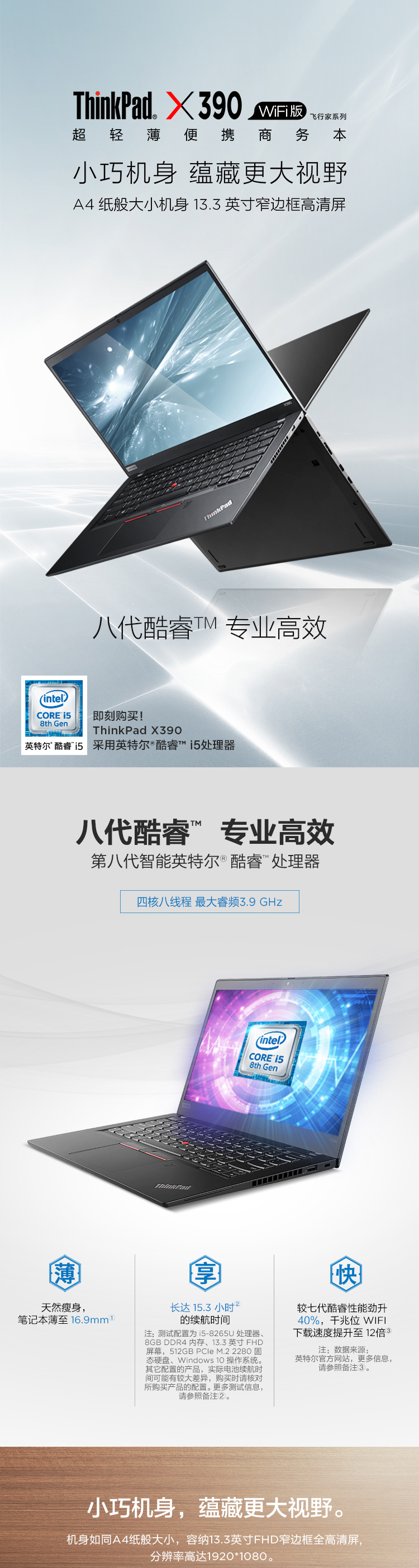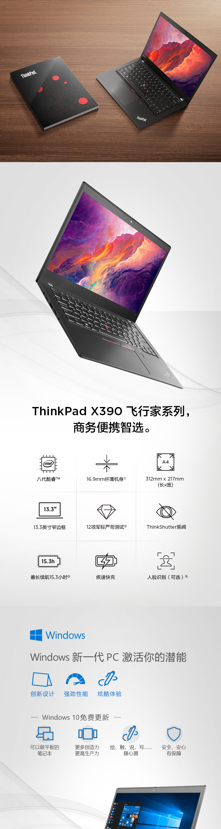 商品名稱:聯(lián)想ThinkPad X390(39CD)英特爾酷睿i5 13.3英寸輕薄筆記本電腦(i5-8265U 8G 256GSSD FHD)