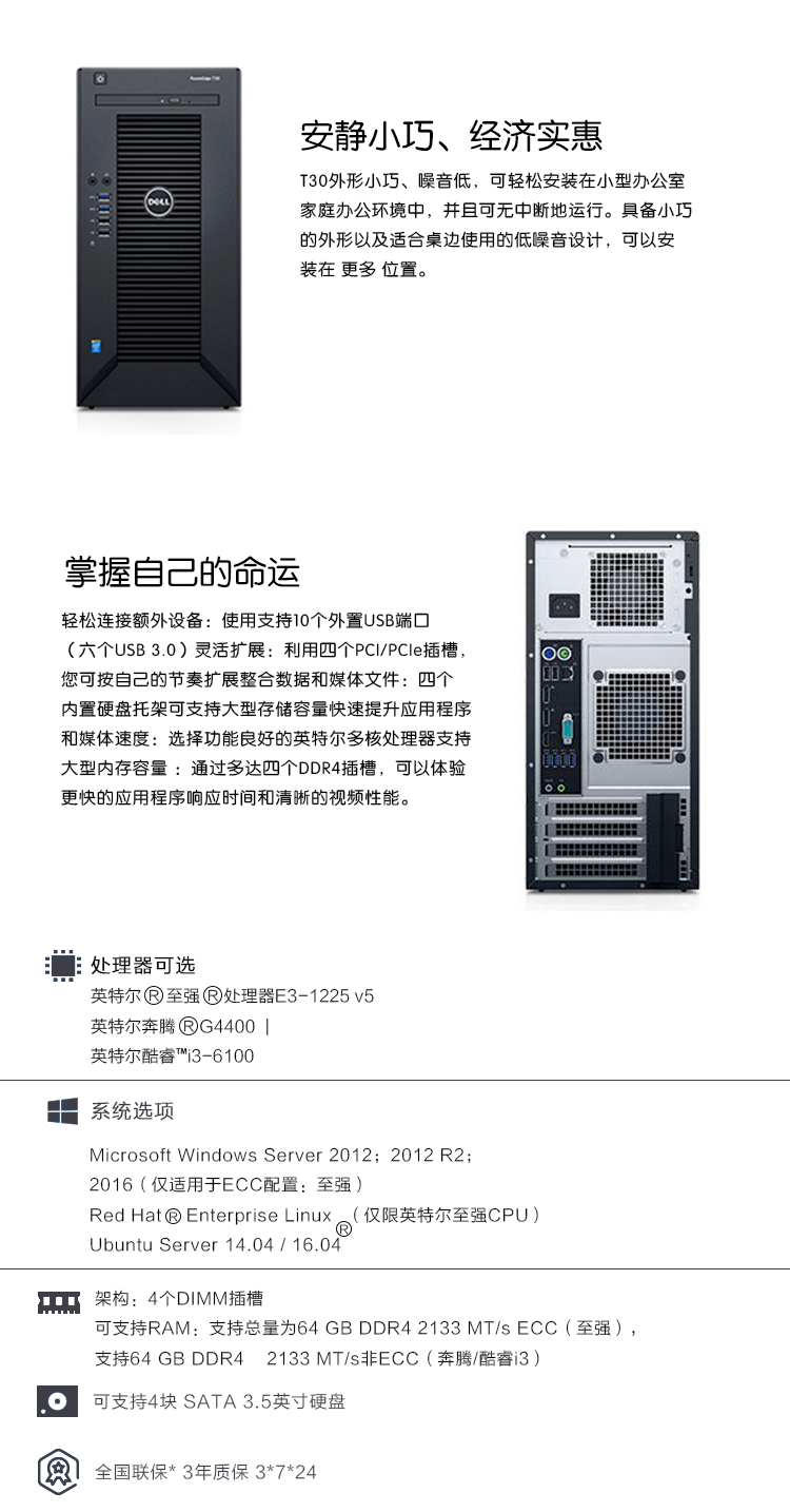 商品名稱:戴爾(DELL)T30/T130/T140/T340小型ERP塔式服務(wù)器主機 T30奔騰雙核G4400【3.3GHz】 4G內(nèi)存|1T硬盤【標(biāo)配】