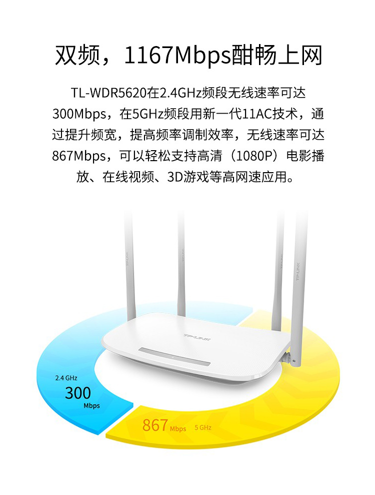 商品名稱:TP- TL-WDR5620 1200M 5G雙頻智能無線路由器 四天線智能wifi 穩(wěn)定穿墻高速家用路由器