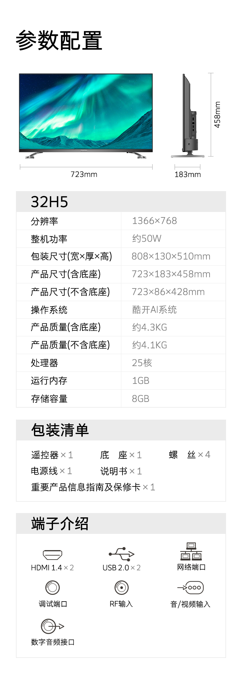 商品名稱:創(chuàng)維(SKYWORTH)32H5 32英寸高清HDR 護(hù)眼全面屏 AI人工智能語(yǔ)音 網(wǎng)絡(luò)WIFI 臥室液晶平板電視機(jī)