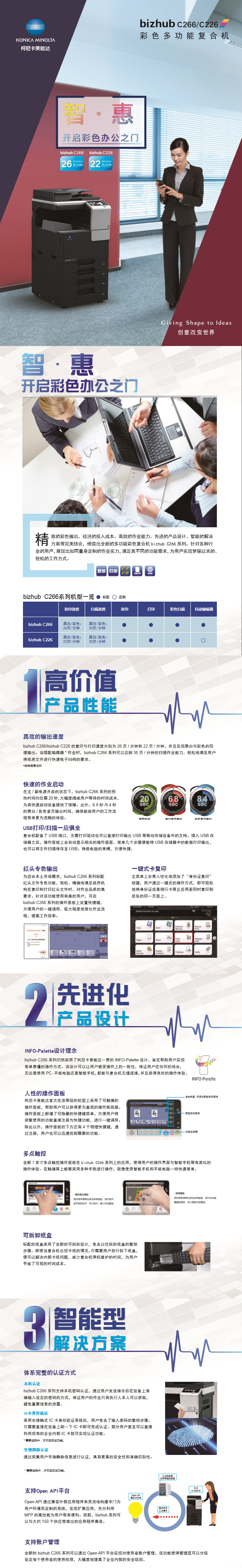 商品名稱:柯尼卡美能達(KONICA MINOLTA)bizhubC226A3彩色復合機22頁/分 打印復印掃描 輸稿器雙紙盒底柜
