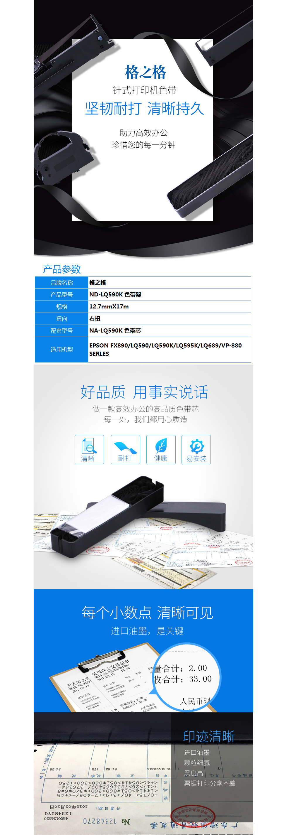 商品名稱:格之格 LQ590K色帶 適用愛普生FX890 LQ590 LQ595K LQ689 VP-880打印機色帶