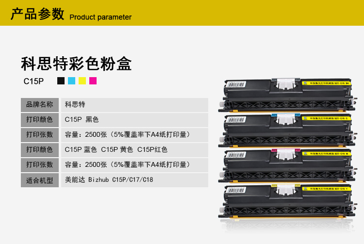 商品名稱:科思特 C15粉盒 適用柯尼卡美能達(dá)打印機(jī)BizhubC15 C17 C18 黃色 專業(yè)版