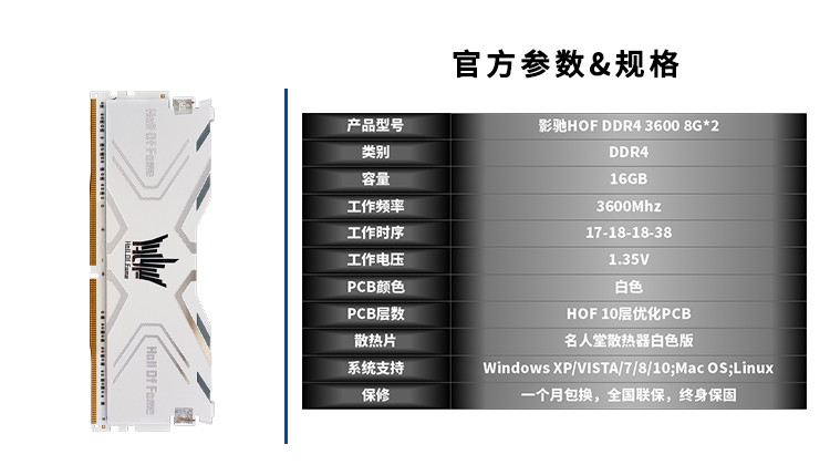 商品名稱:影馳 名人堂DDR4 3600 8G*2 16G 臺式機(jī)電腦內(nèi)存條 白色 DDR4 3600