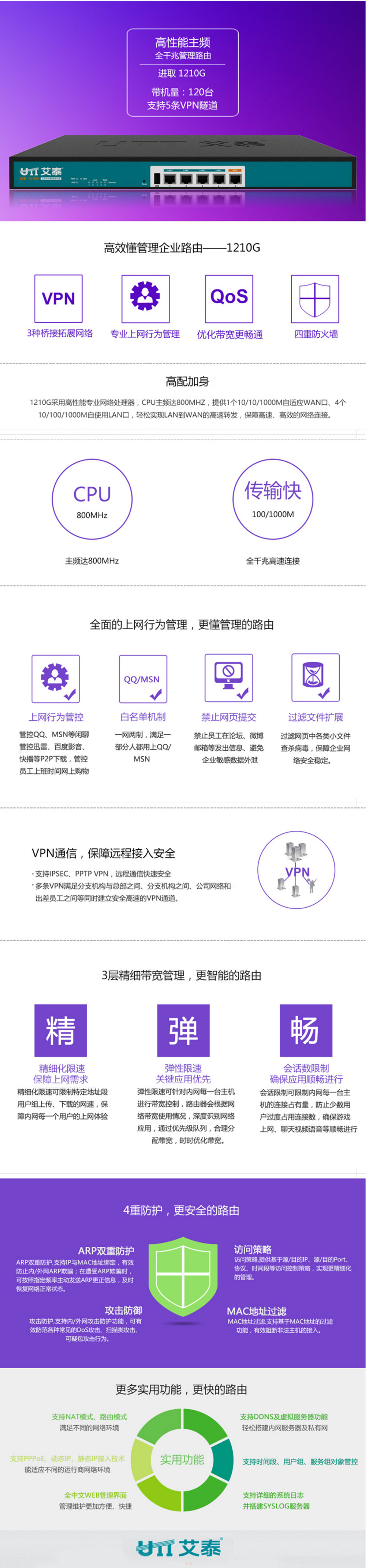 商品名稱:C艾泰(UTT)1210G 全千兆企業(yè)級(jí)上網(wǎng)行為管理路由器(帶寬管理/VPN/端口鏡像)